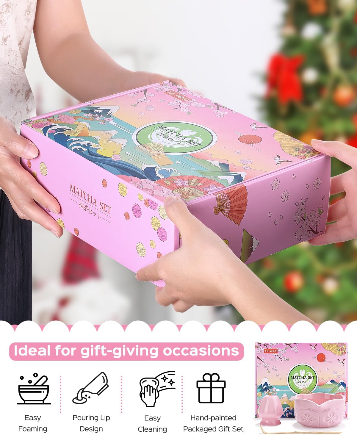• The Ideal Matcha Gift Set: Curated as a functional work of art, this matcha set reflects timeless craftsmanship—from the traditionally made tools to the hand-painted gift box.It bridges traditional Japanese tea culture with modern elegance, honoring heritage while serving as a practical statement of refined living. Whether gifted or kept for personal ritual, this set offers a tangible piece of culture and a moment of mindful practice every day.
