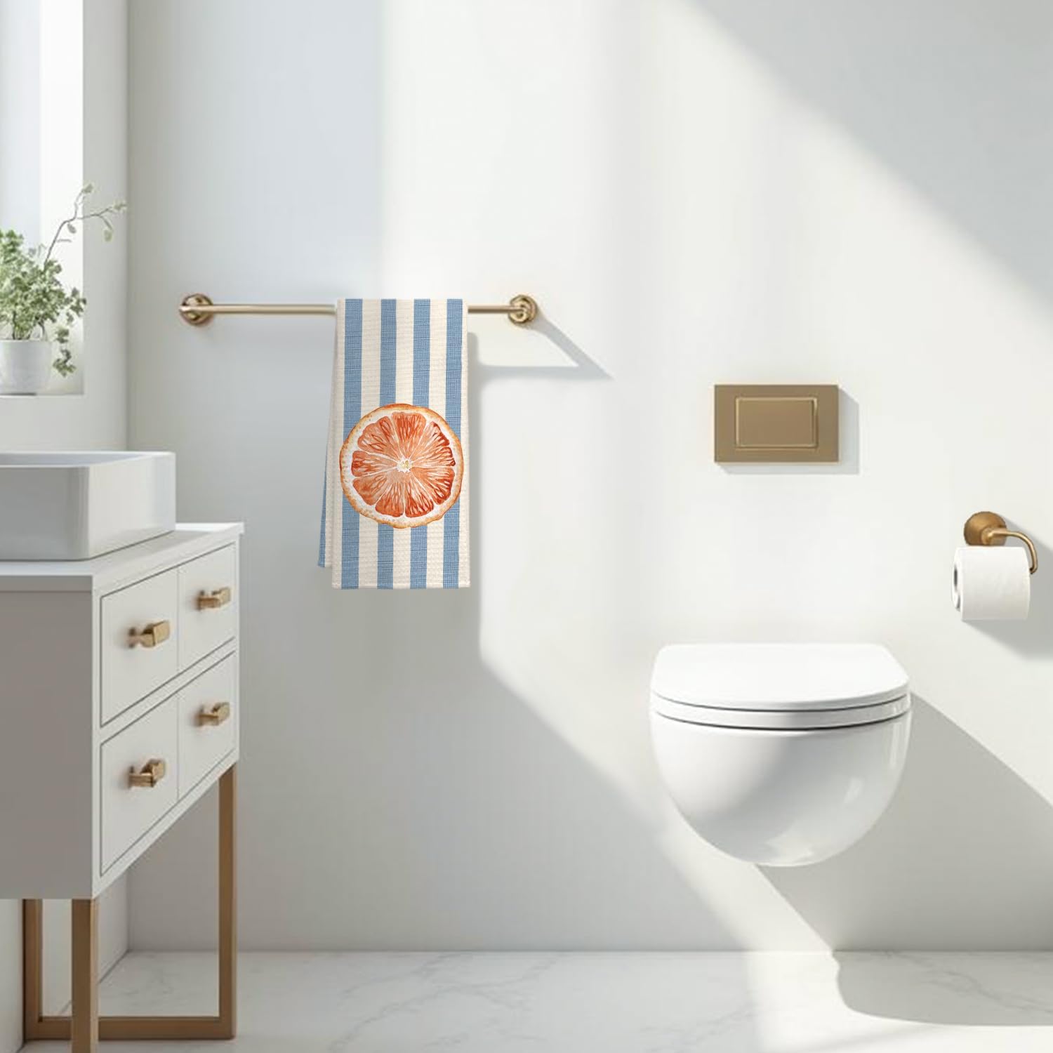 Grapefruit Fruit Kitchen Towels, Blue and White Striped Grapefruit Dish Tea Towel for Kitchen Decor, Fruit Lover Gifts Decorative Hand Towels for Bathroom, 16x24 Inch