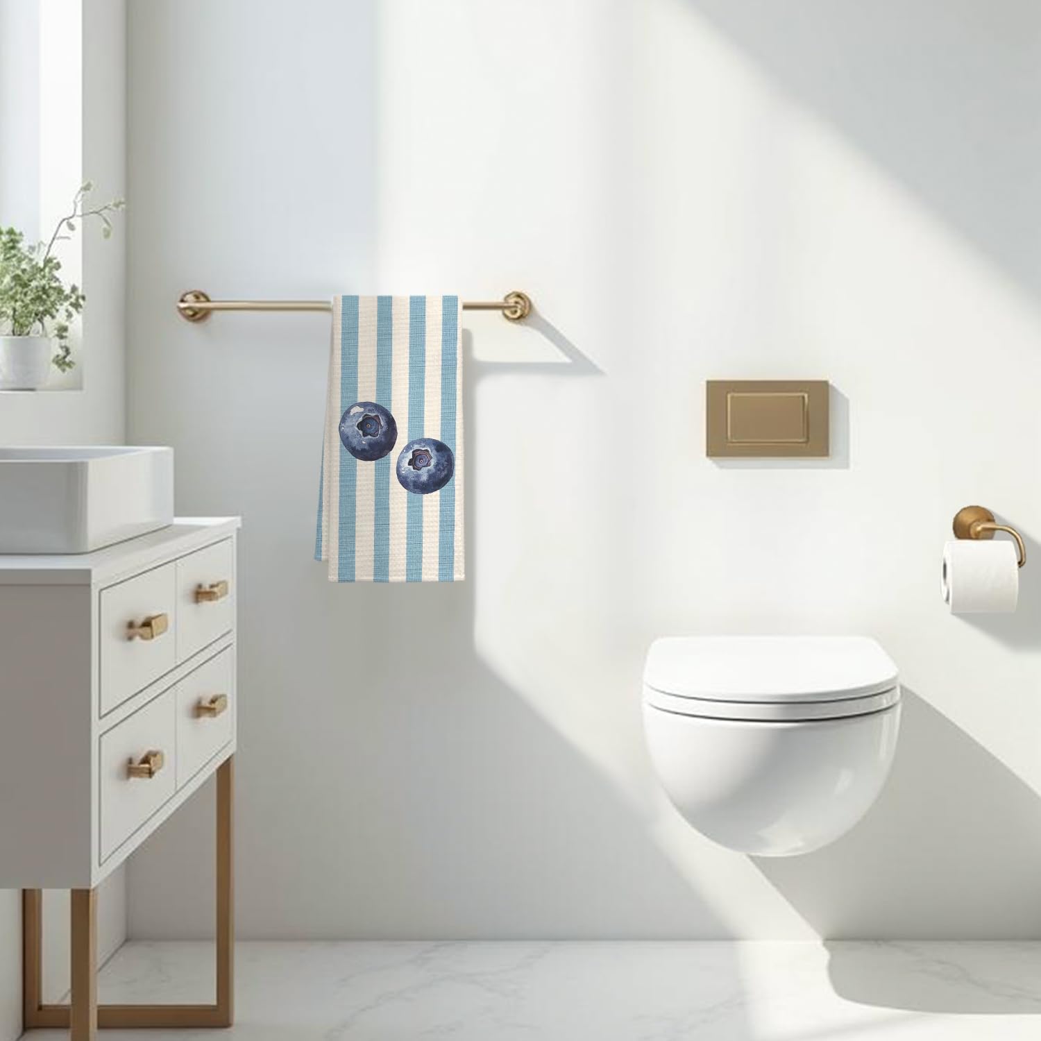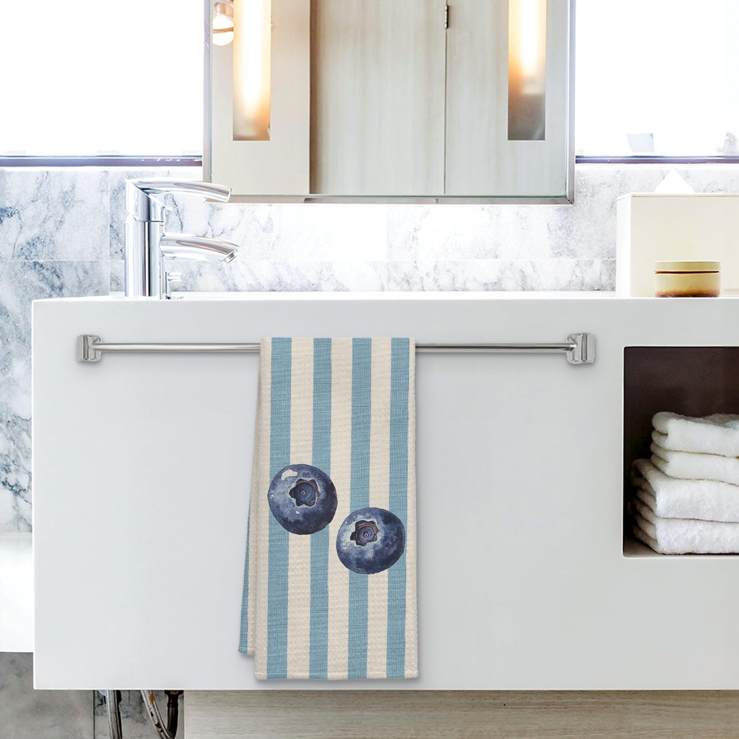 Blueberry Decor Kitchen Towels, Blue and White Striped Summer Blueberry Dish Tea Towel for Kitchen Decor, Fruit Lover Gifts Decorative Hand Towels for Bathroom, 16x24 Inch