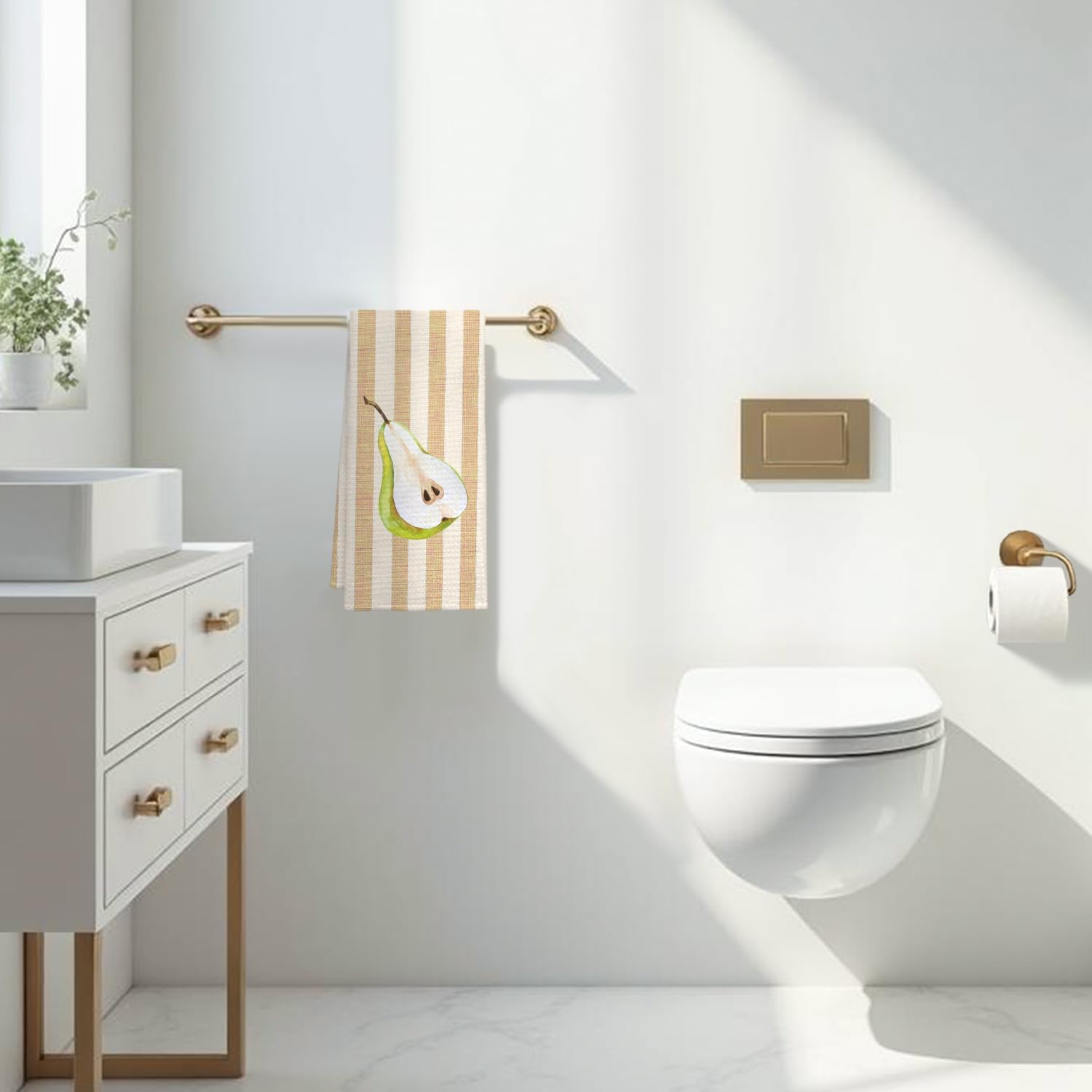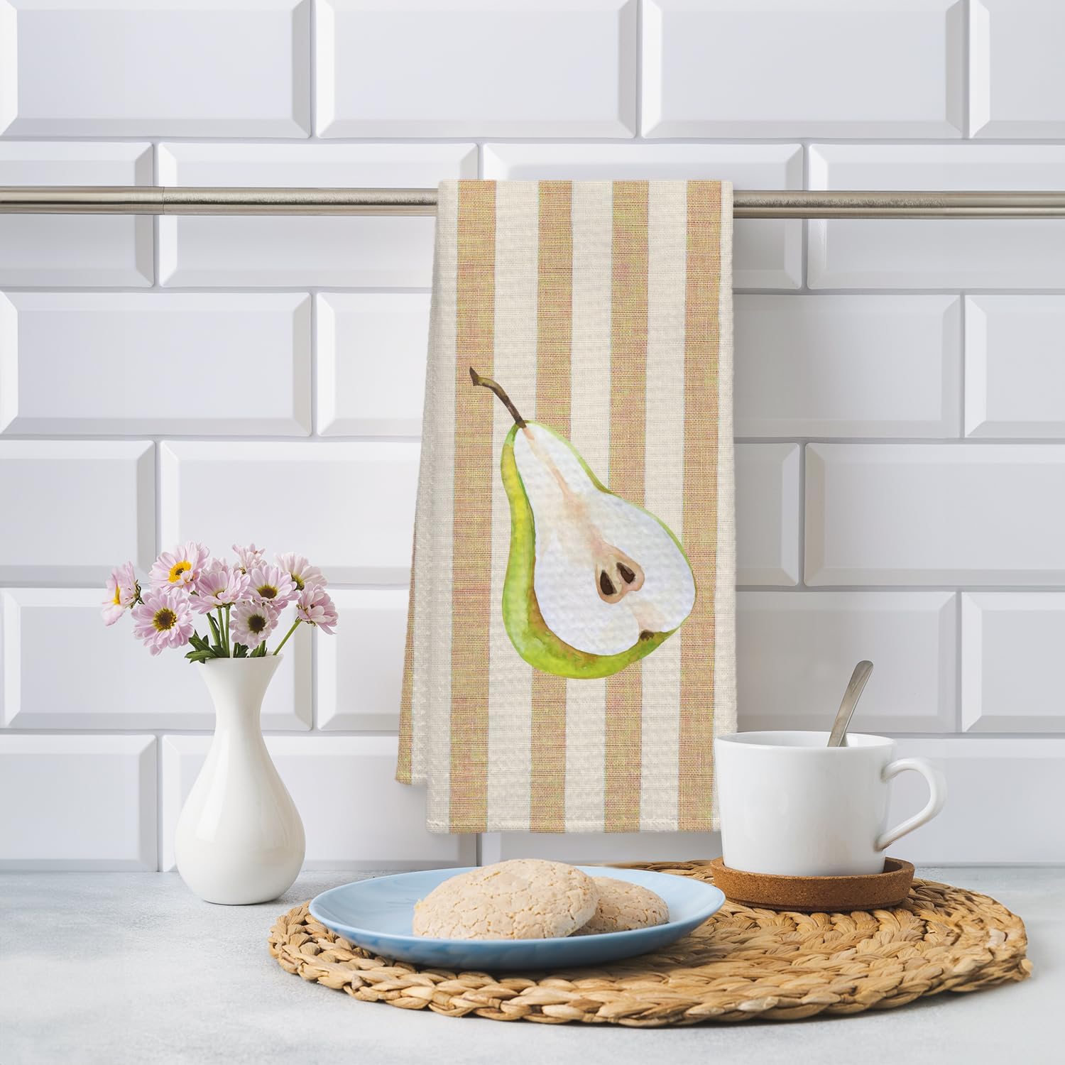 Pear Fruit Kitchen Towels, Beige Striped Pear Dish Tea Towels for Kitchen Decor, Gifts for Fruit Lovers Decorative Hand Towel, 16x24 Inch
