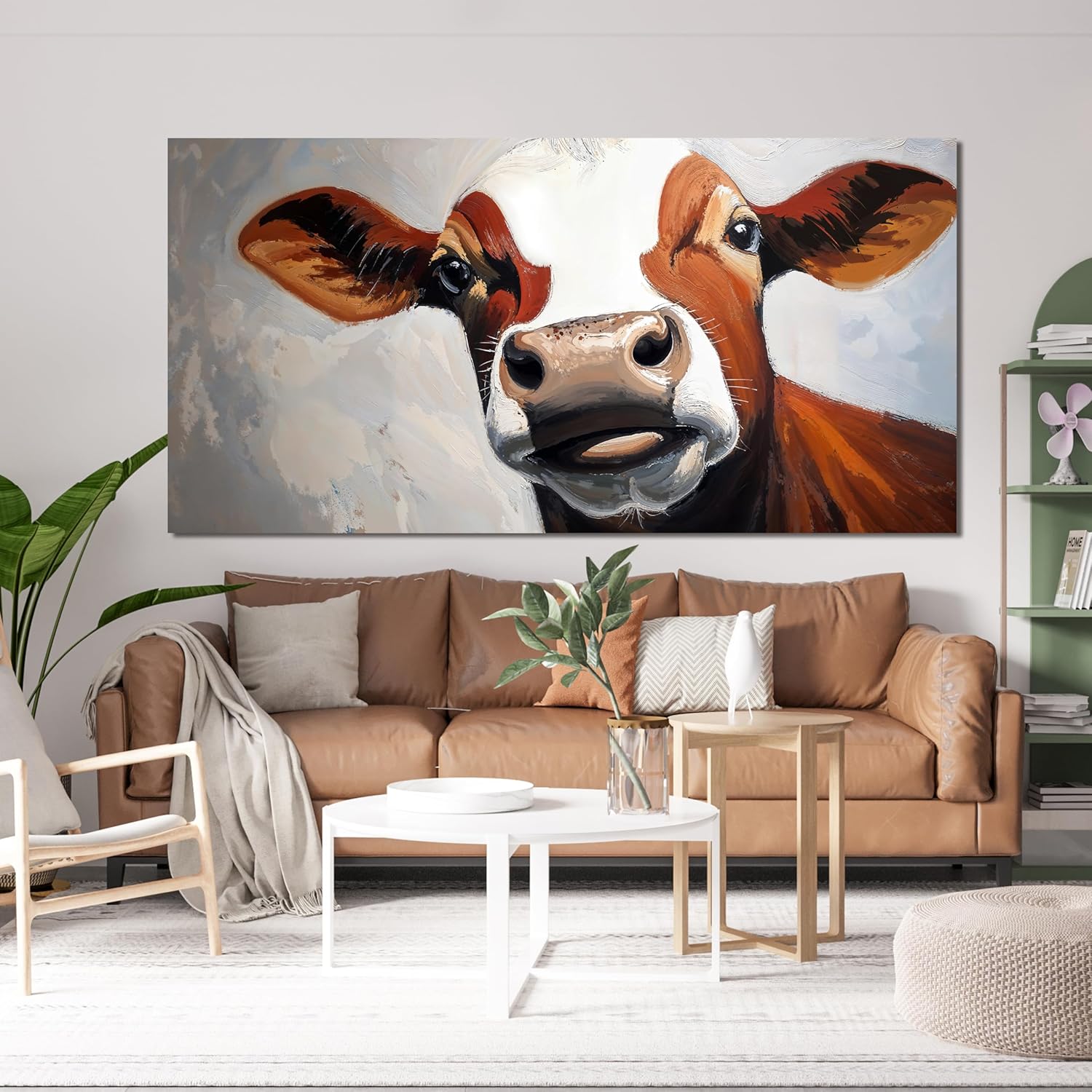 Canvas Wall Art Decor Canvas Large Abstract Living Room Decor Wall Highland Cow Black And White Wall Art Modern Abstract Wall Art Canvas Print Work For Home Kitchen Office Wall Decor 24" X 48"