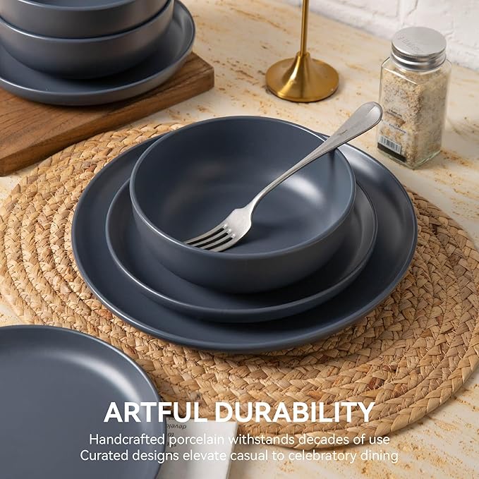 • PREMIUM STONEWARE MATERIAL: Crafted from high-density stoneware fired at over 2100°F, these plates and bowls are chip-resistant and built to last. The sturdy design offers excellent heat retention and everyday durability.