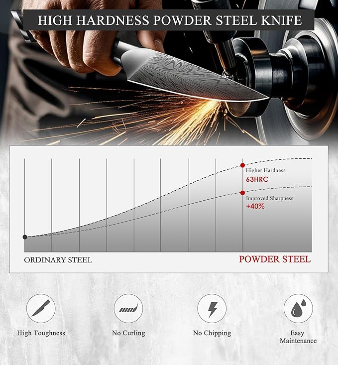 • 【Powder Steel Paring Knife】The kitchen paring knife is made of high-carbon Japanese powder steel with a hardness of 63HRC. It is harder than 99% of ordinary steels, offering excellent rust resistance and durability