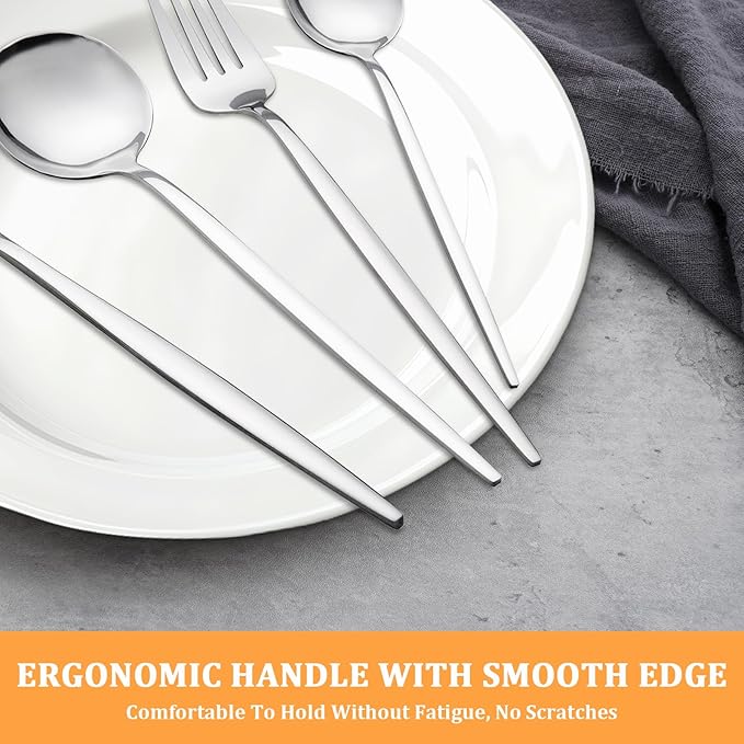 • SIMPLE DESIGN:There are no frills decor on this silverware set. Simple design but elegant enough to match with your existing silverware and makes your table settings elegant and different. Elegant silverware elevate everyday meals into a fine dining experience.