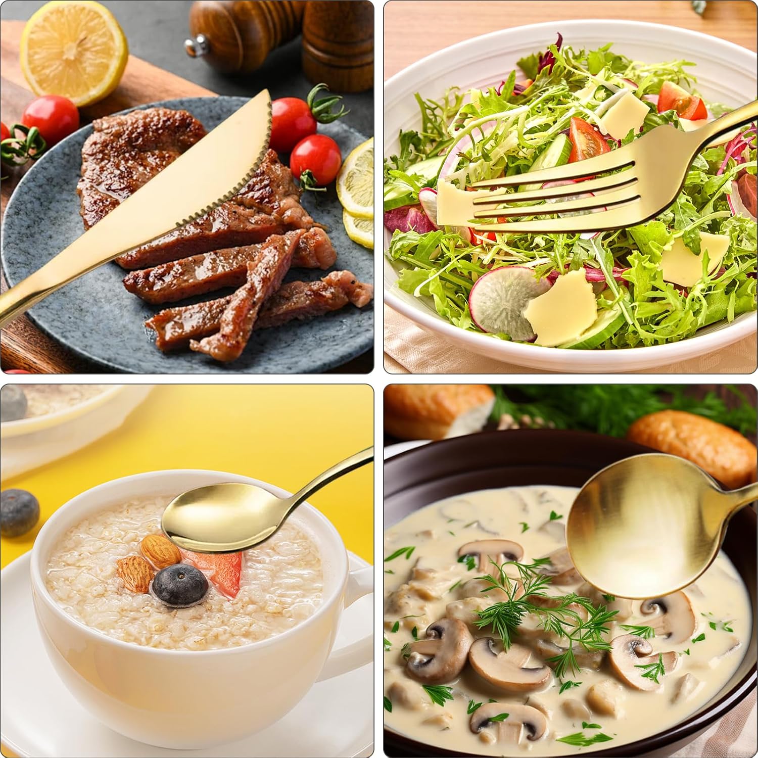 24-Piece Golden Flatware Set, Gold Silverware Set for 6, 18/0 Stainless Steel Knife Fork Spoon Teaspoon Silverware Set (Golden)