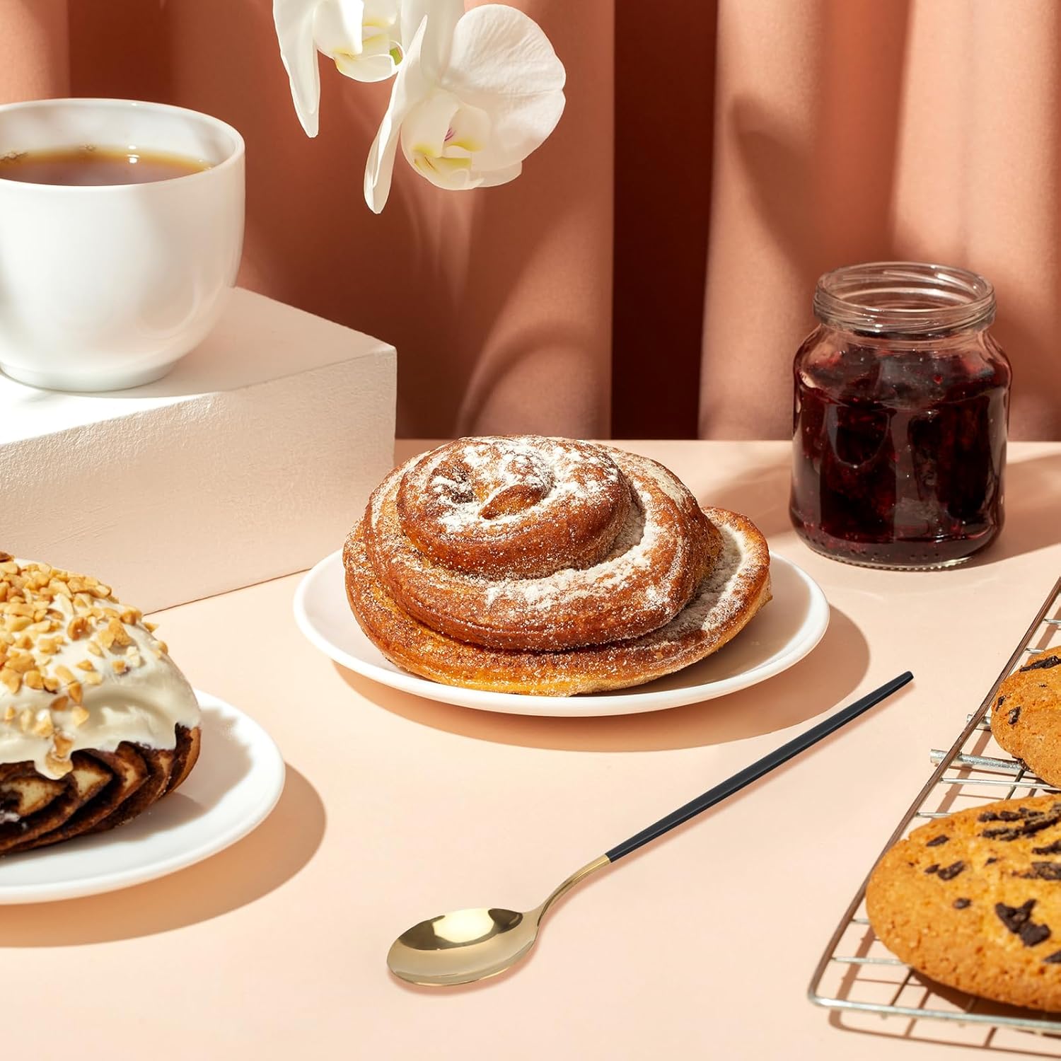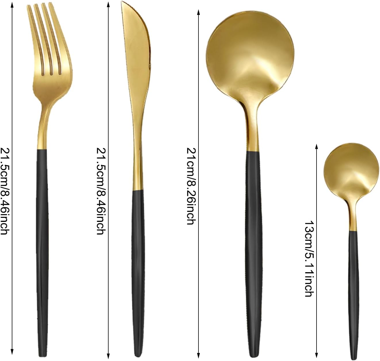 24-Piece Black Golden Flatware Set, Gold Silverware Set for 6, 18/0 Stainless Steel Knife Fork Spoon Teaspoon Silverware Set (Black Golden)