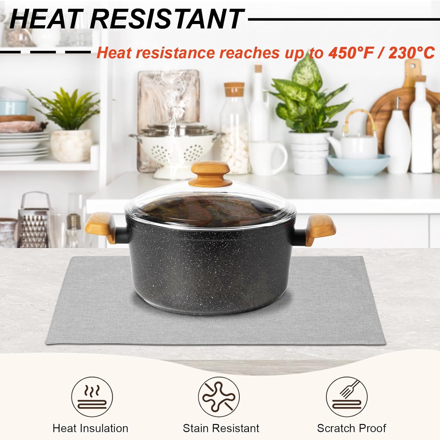 • Function and Features: Our linen fabric placemats, boasting a solid texture, are highly resistant to wear and heat. Their appropriate thickness enables them to effectively shield your table from burns caused by hot plates, scratches from utensils, and stains from various spills. NOT waterproof