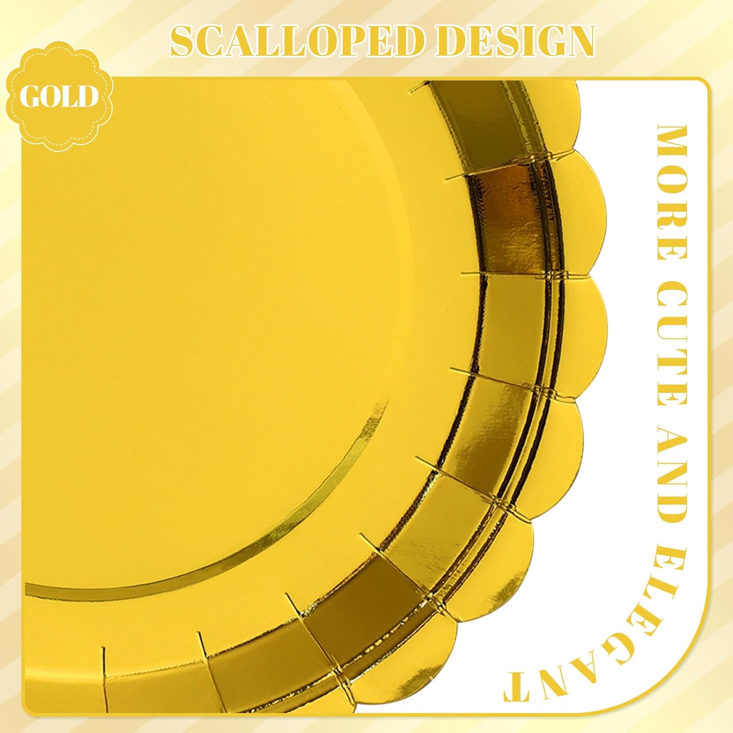 30 Pcs Gold Plates Disposable 9 Inch Scalloped Gold Paper Plates Dessert Cake Plate Cute Party Plate for Wedding, Birthday, Holiday