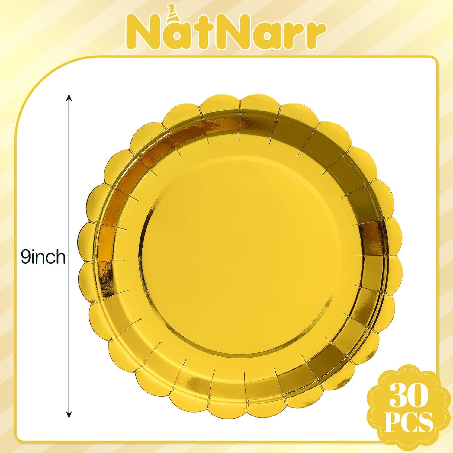 • Gold Paper Plates Set:Package includes 30 x 9 inch gold disposable plates, enough quanities, which are suitable for using in multi-person gatherings