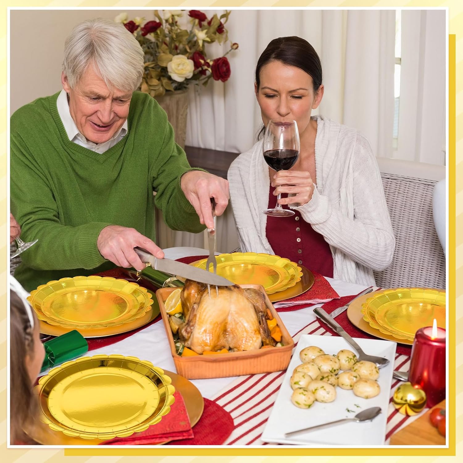 • Wide Application: scalloped gold dinner plates are suitable for various parties, such as birthday, wedding reception, graduation ceremonies, engagements, thanksgiving, christmas and other parties. They can also be used for daily family dinners and picnics