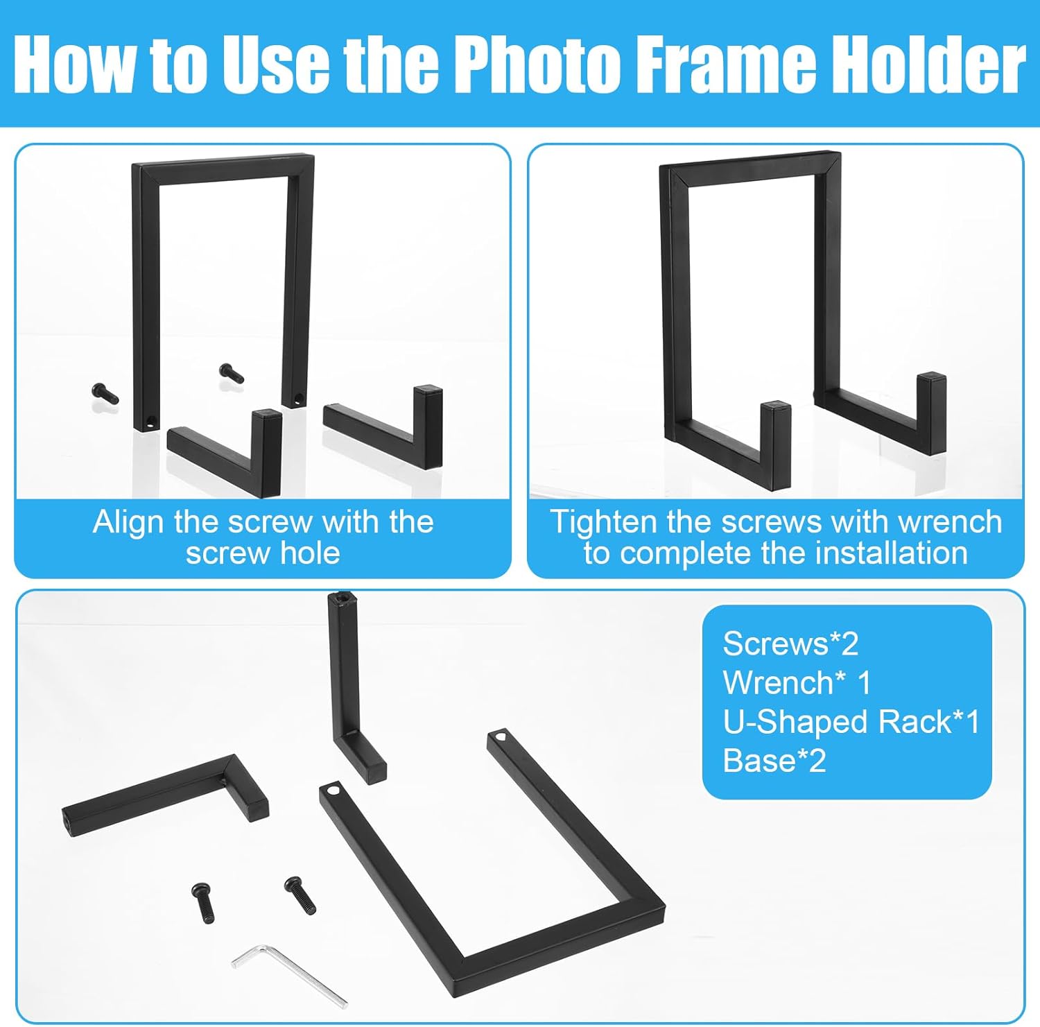 • 【Modern Aesthetic】 Featuring a minimalist matte black finish, these display stands blend seamlessly with contemporary decor. The geometric lines create an industrial-chic look without overwhelming tabletops. Elegant picture frame holders enhance artwork visibility while complementing shelves or countertops.