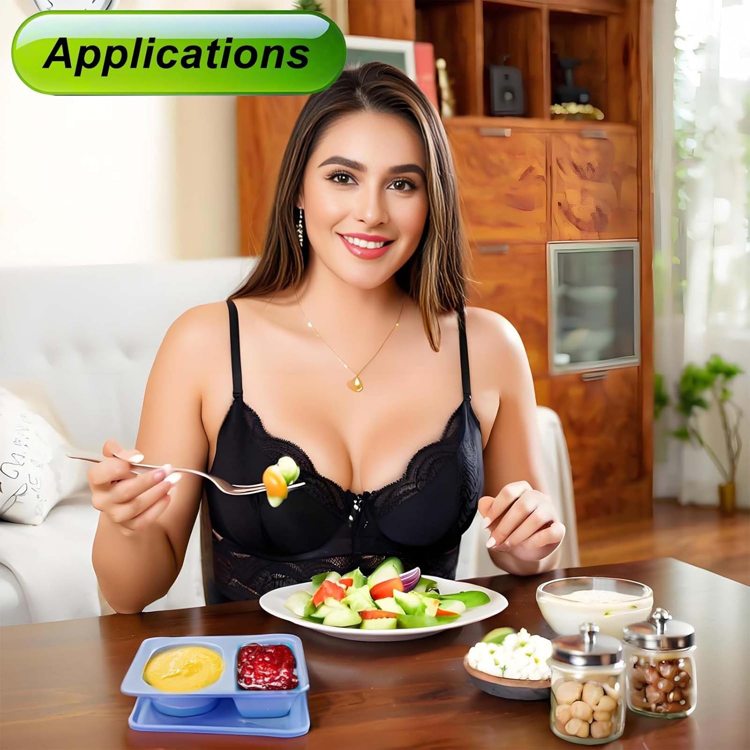 • DUAL-COMPARTMENT VERSATILITY.Two separate sections (90ml square + 100ml round) let you pack savory vs. sweet, dry vs. wet, adult portions in one compact snack box. Store hummus with veggie sticks, honey with berries, or ketchup with fries – no flavor mixing!3pack with different colors:Blue,Pink &Green silicone.
