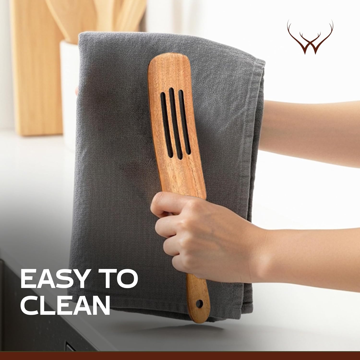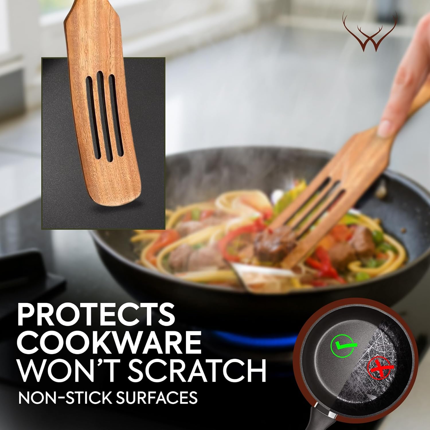• ✔️ Essential kitchen tool — Wooden cooking spatula fits perfectly in any wooden kitchen utensils set for everyday use.