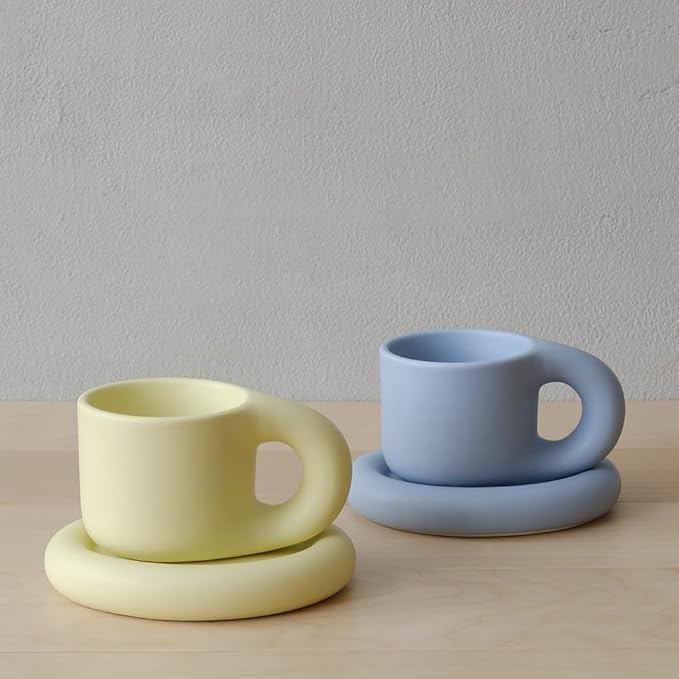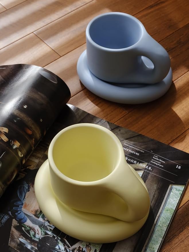 WENSHUO Chubby Funny Coffee Mug, Novelty Cute Cup and Saucer, Matte Crème, 9 oz