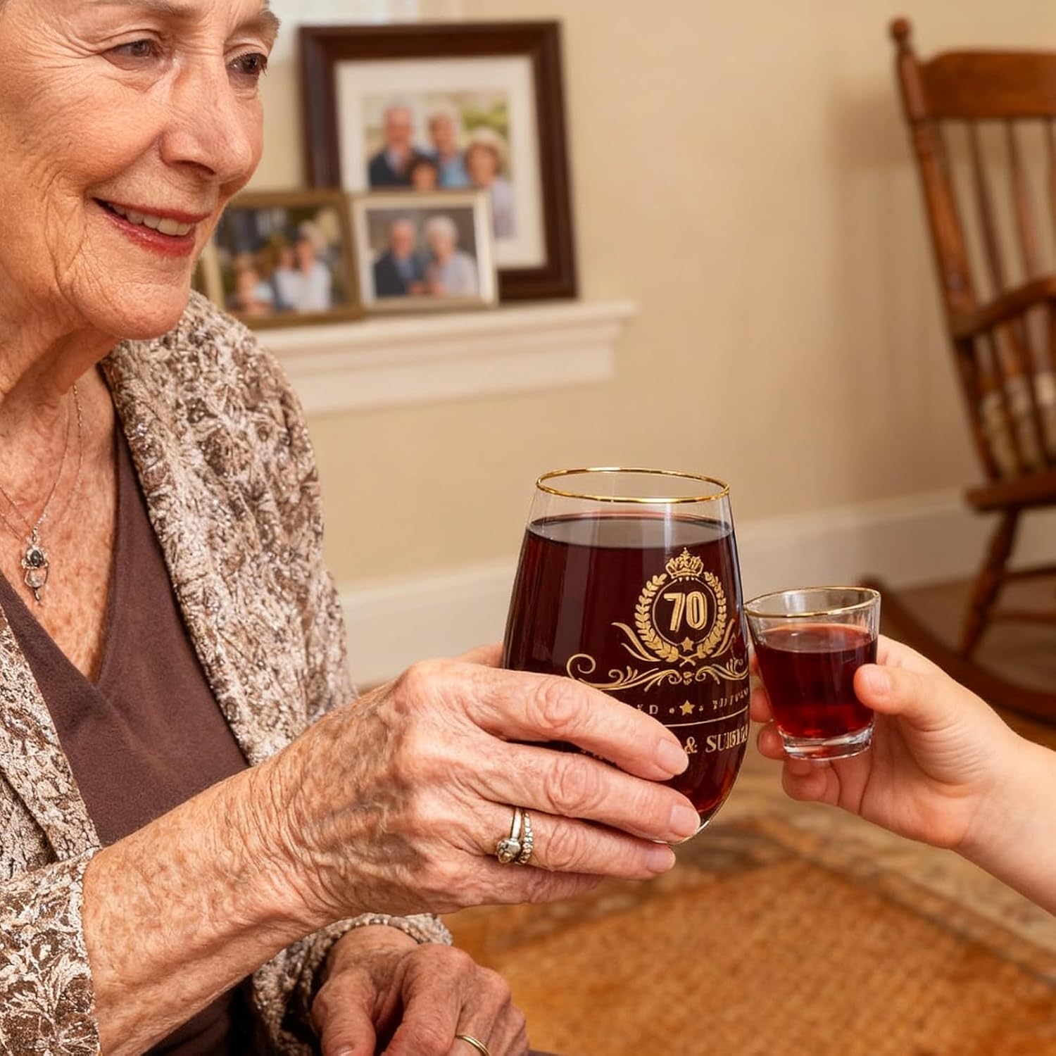• 👑 Paying a Tribute to Seven Decades of Legendary - Seventy years, a lifetime of stories, strength, and unconditional love that has become the bedrock of your family. This glittering gold stemless wine glass is more than a gift, this is a standing ovation for our matriarch. The ultimate gesture to show Grandma, Mom, or Nana that her legacy is forever cherished.