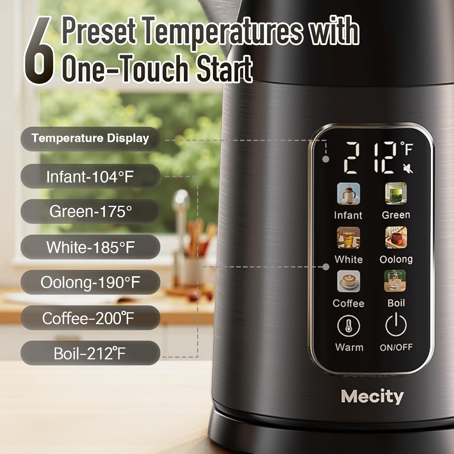 Mecity Electric Kettle 1.7L Touch Screen Temperature Control Water Boiler, No Plastic Contact with Water. 6 Preset Temperature Programs, 2 Hours Keep Warm, Dark Grey