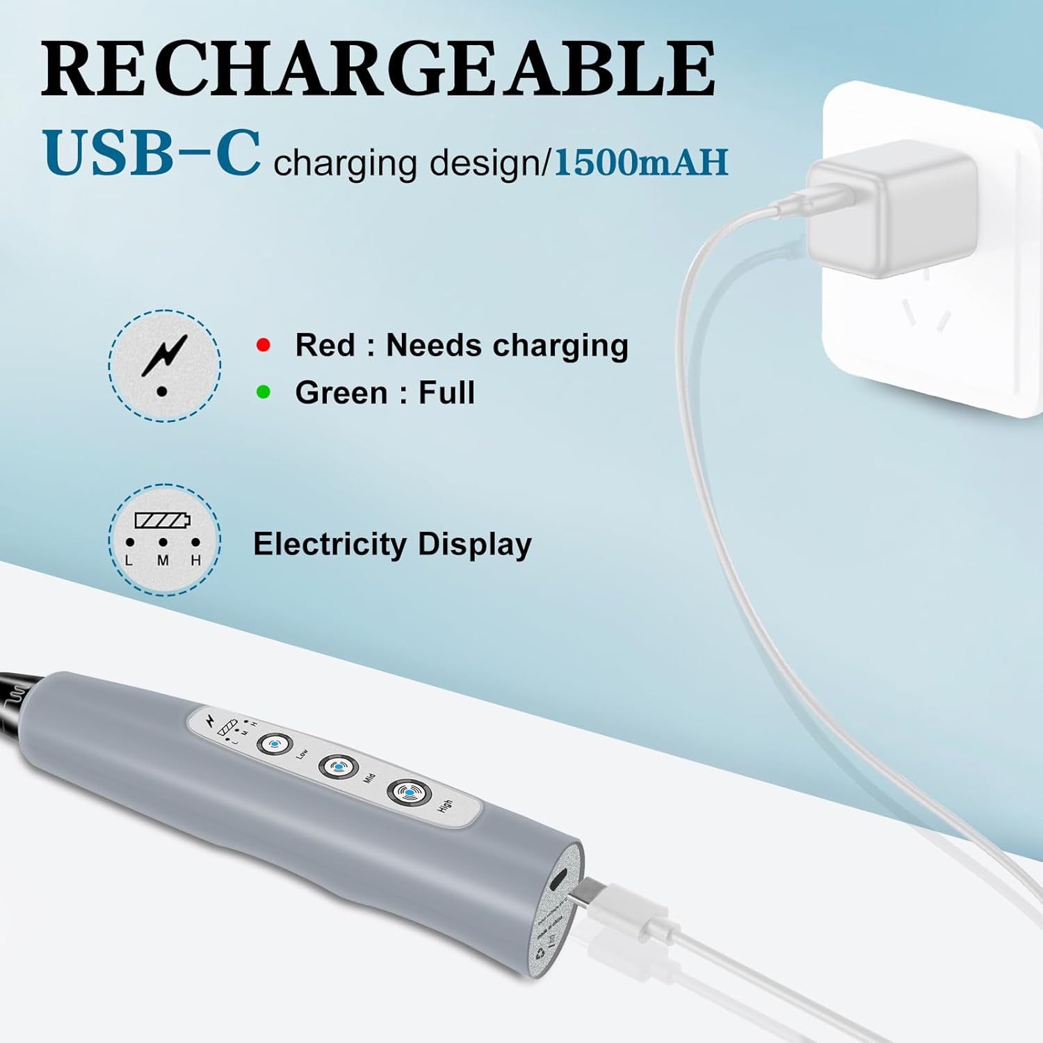 • USB-C Charging Long Battery Life: Our electric frother wand adopts USB charging design, which is more environmentally friendly and lighter than the battery type, allowing you to charge it anytime and anywhere. It can be used at home, in the office, or even taken out for camping. The built-in battery capacity is 1200mAh, which can be used several times a day after being fully charged. This drink mixer handheld also includes a charging indicator light that lights up red when charging and green when fully charged.