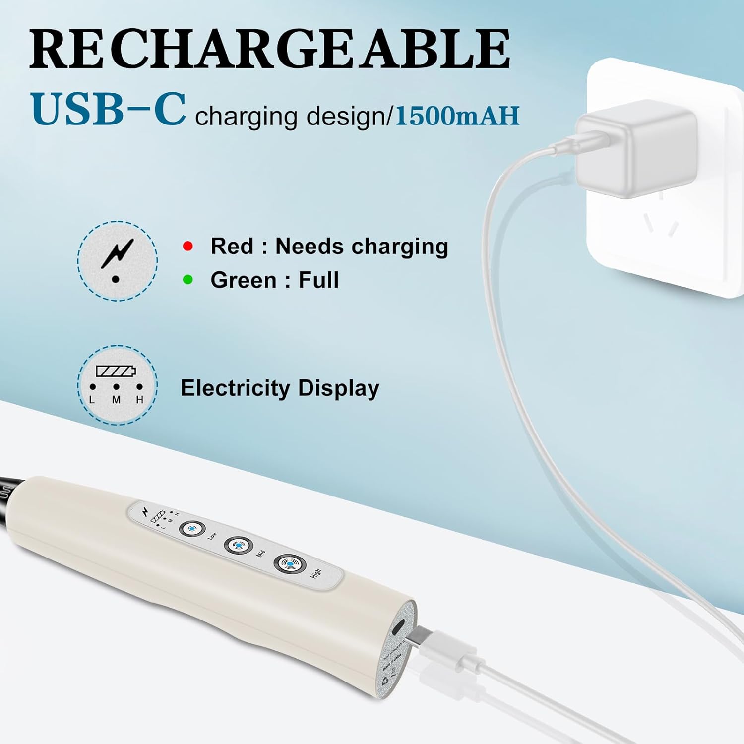 • USB-C Charging Long Battery Life: Our electric frother wand adopts USB charging design, which is more environmentally friendly and lighter than the battery type, allowing you to charge it anytime and anywhere. It can be used at home, in the office, or even taken out for camping. The built-in battery capacity is 1200mAh, which can be used several times a day after being fully charged. This drink mixer handheld also includes a charging indicator light that lights up red when charging and green when fully charged.