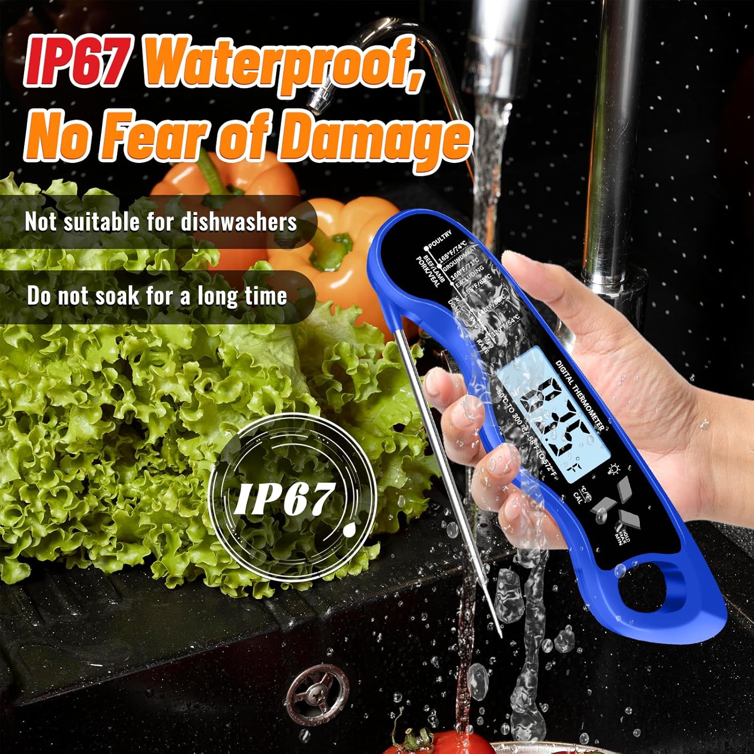 Meat Thermometer, IP67 Waterproof Digital Meat Thermometer with Backlight, Hold Function & Magnet for Grill, BBQ, Candy, Beef,Turkey,Gadgets Essentials BBQ Accessories,Mens Stocking Stuffers