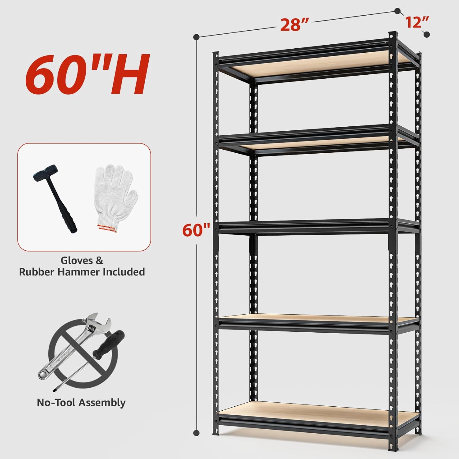 28" W Father&I Industrial Heavy-Dudy Garage Shelving Units/Systems: Metal 5-Tier Storage Shelves Adjustable for Basement/Closet/Tote/Kitchen/Pantry Organization, 60" H*28W *12" D, Black