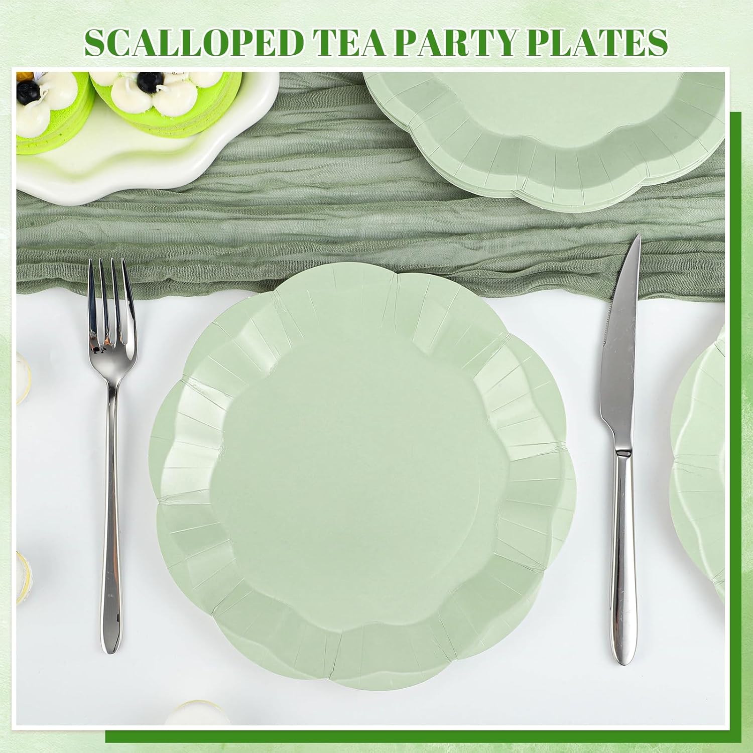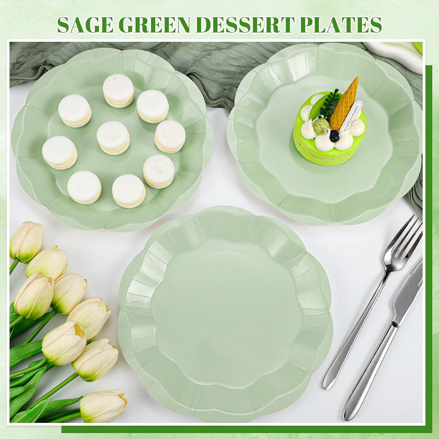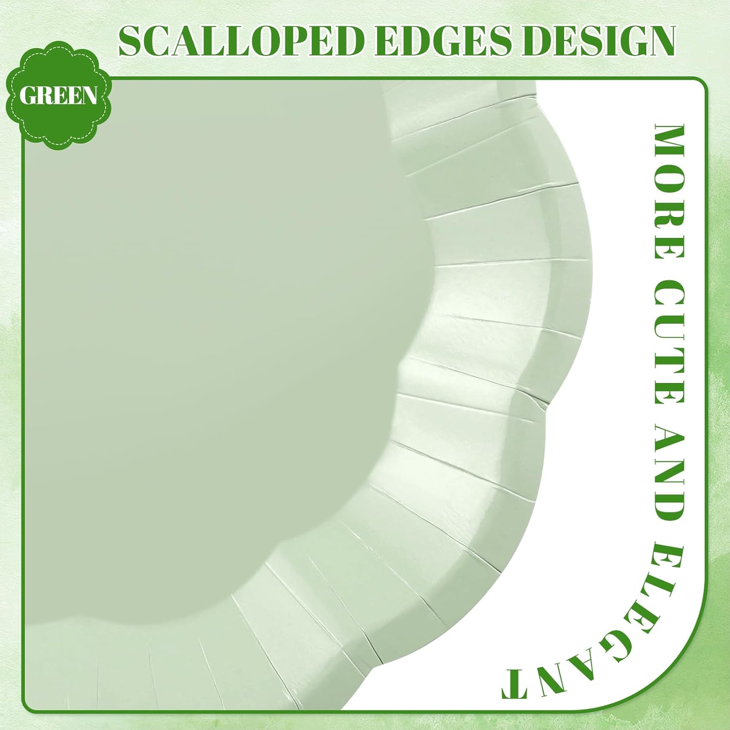 30pcs Sage Green Paper Plates, 9inch Scalloped Sage Green Dessert Dinner Plates Cute Party Plate Disposable Greens Party Supplies for Wedding, Baby Bridal Shower, Birthday