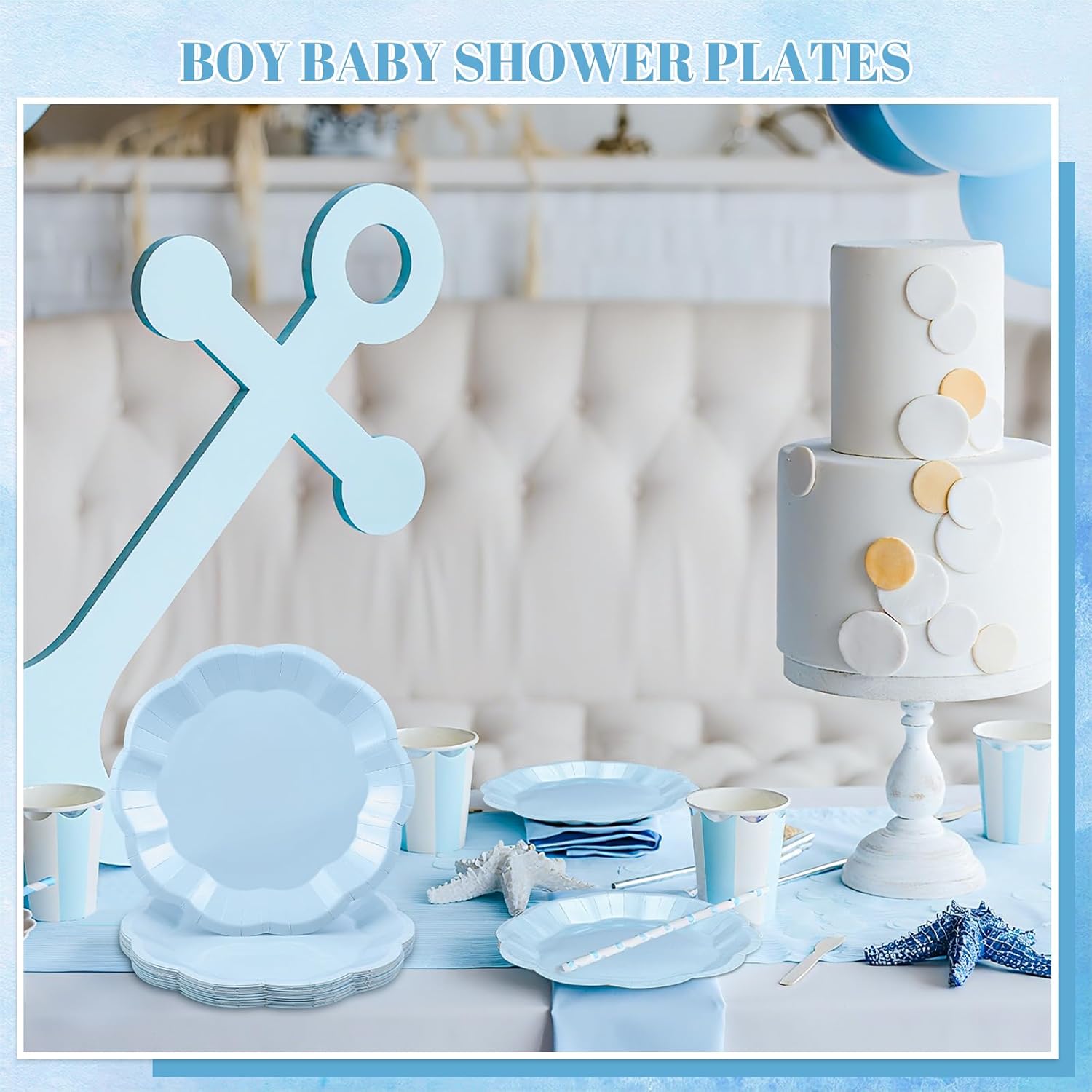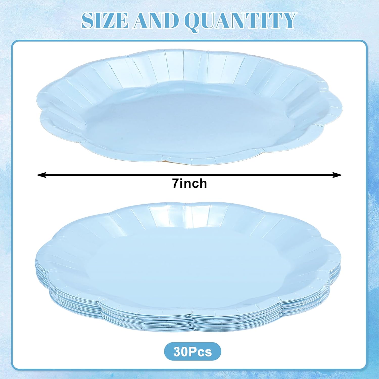 30pcs Light Blue Plates,7inch Scalloped Blue Dessert Cake Plates Cute Disposable Party Plate for Weeding, Birthday, Baby Shower