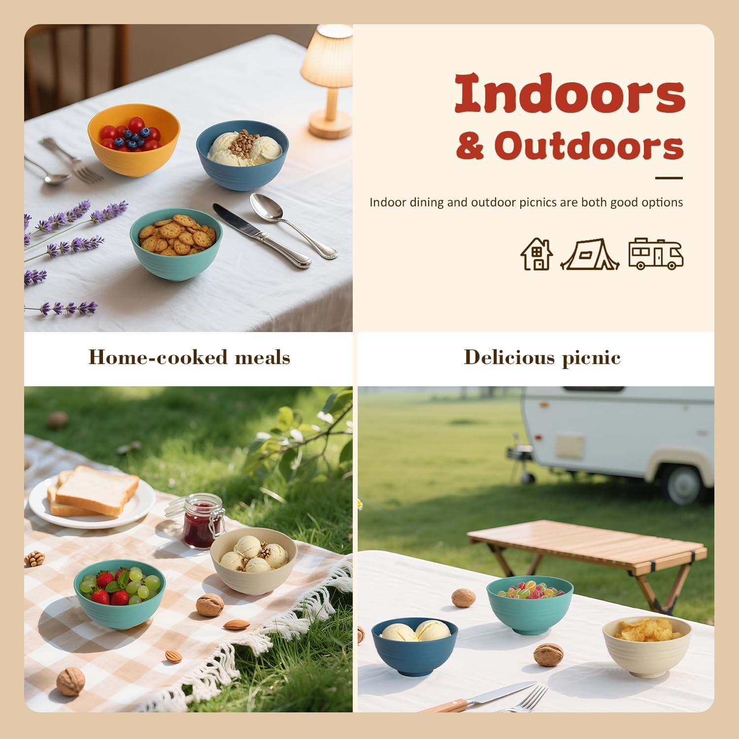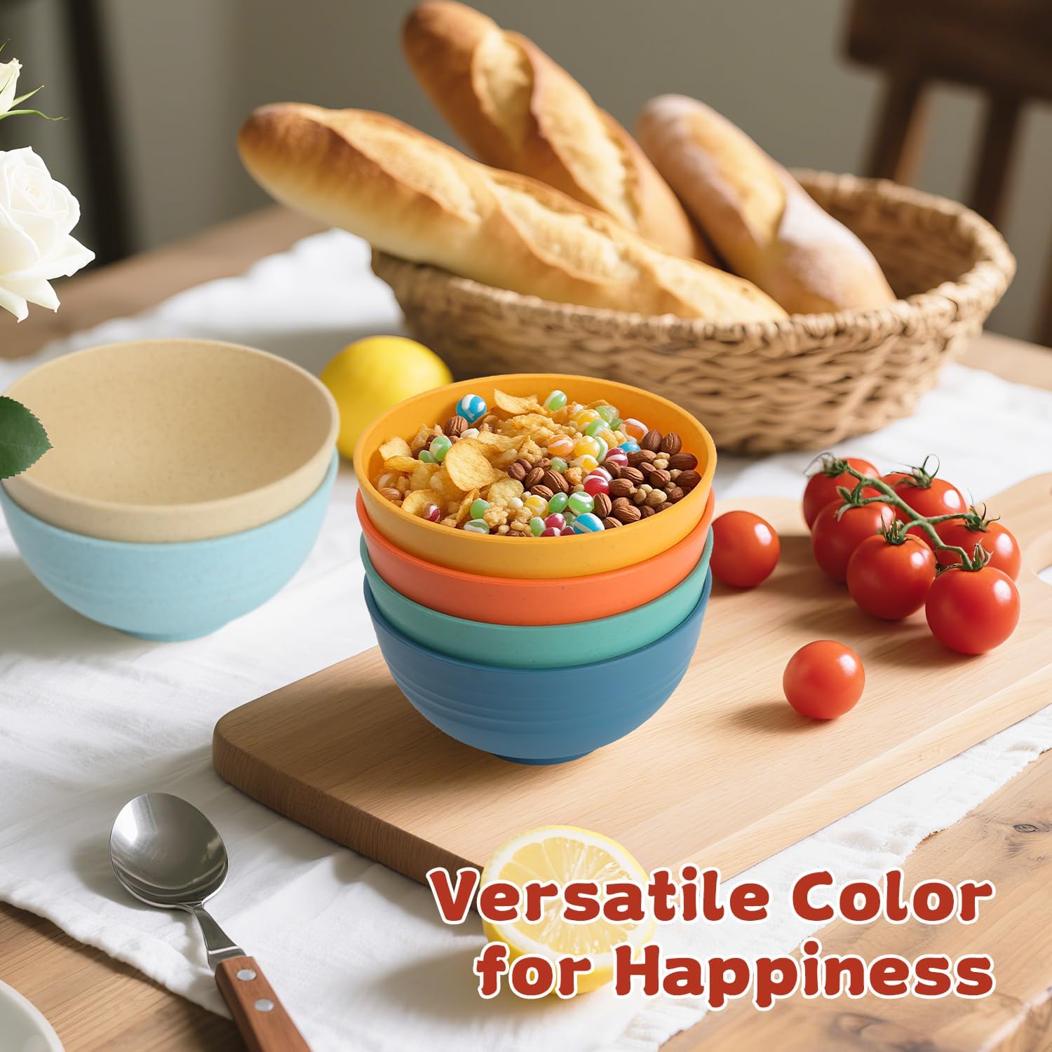 Wrova Handy Wheat Straw Bowls Set of 6,Unbreakable Ice-Cream Bowls Sets for Kids,10oz Small Dessert Bowls for Kitchen,Camping and RV.Vibrant Series