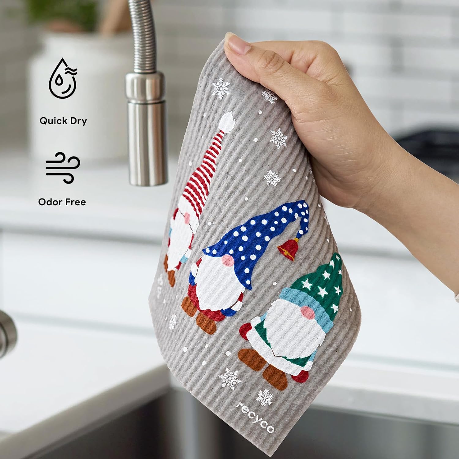 RECYCO Swedish Dishcloths for Kitchen | 4 Pack Cookie Joy Washable Dish Rags | Cellulose Reusable Cleaning Paper Towels | Absorbent Counter Dish Cloth Sponge Kitchen Wipes, 8" L x 7" W