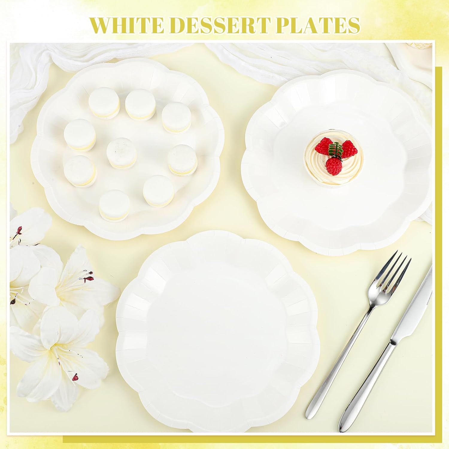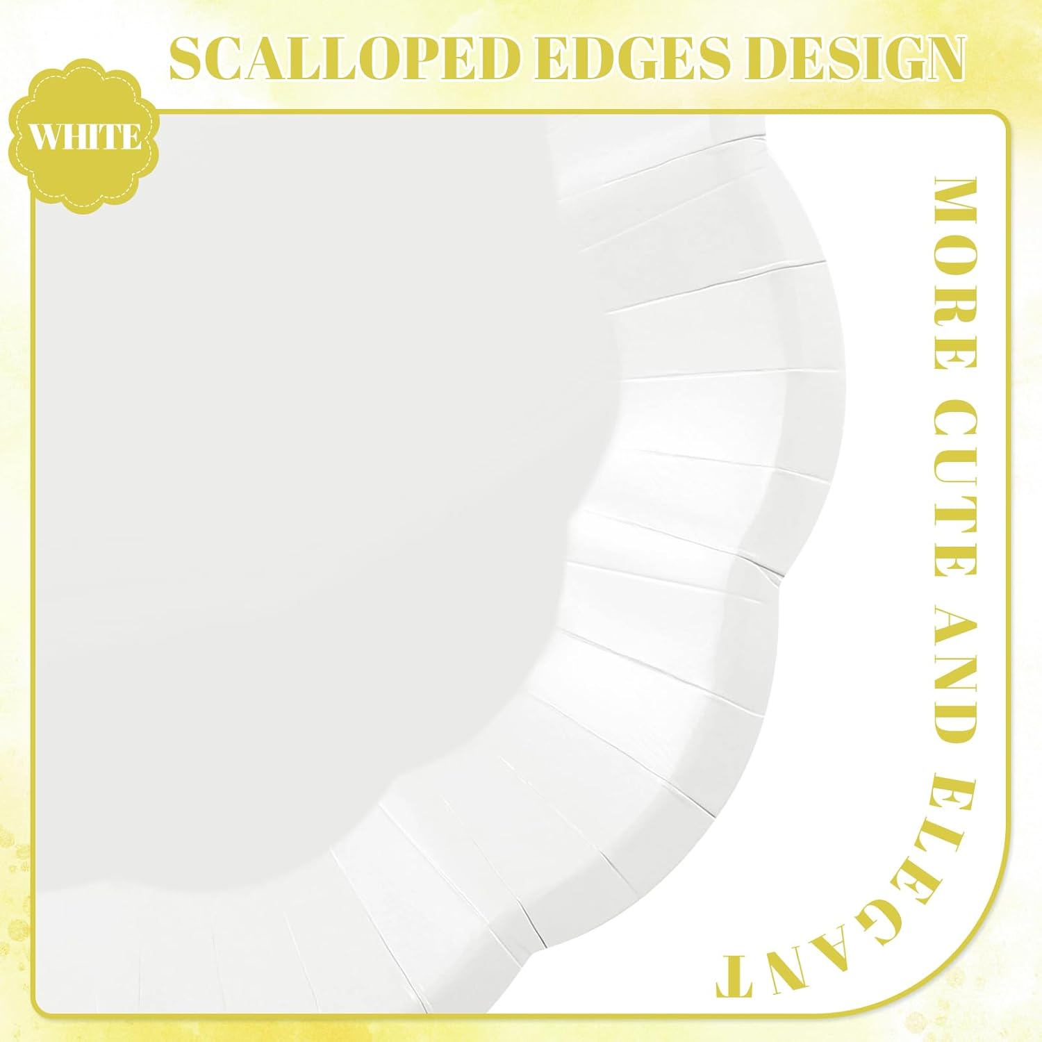 30pcs Scalloped Plates, 7 Inch Disposable White Paper Plates Cute Paper Dessert Cake Dinner Party Supplies for Wedding Bridal Baby Shower