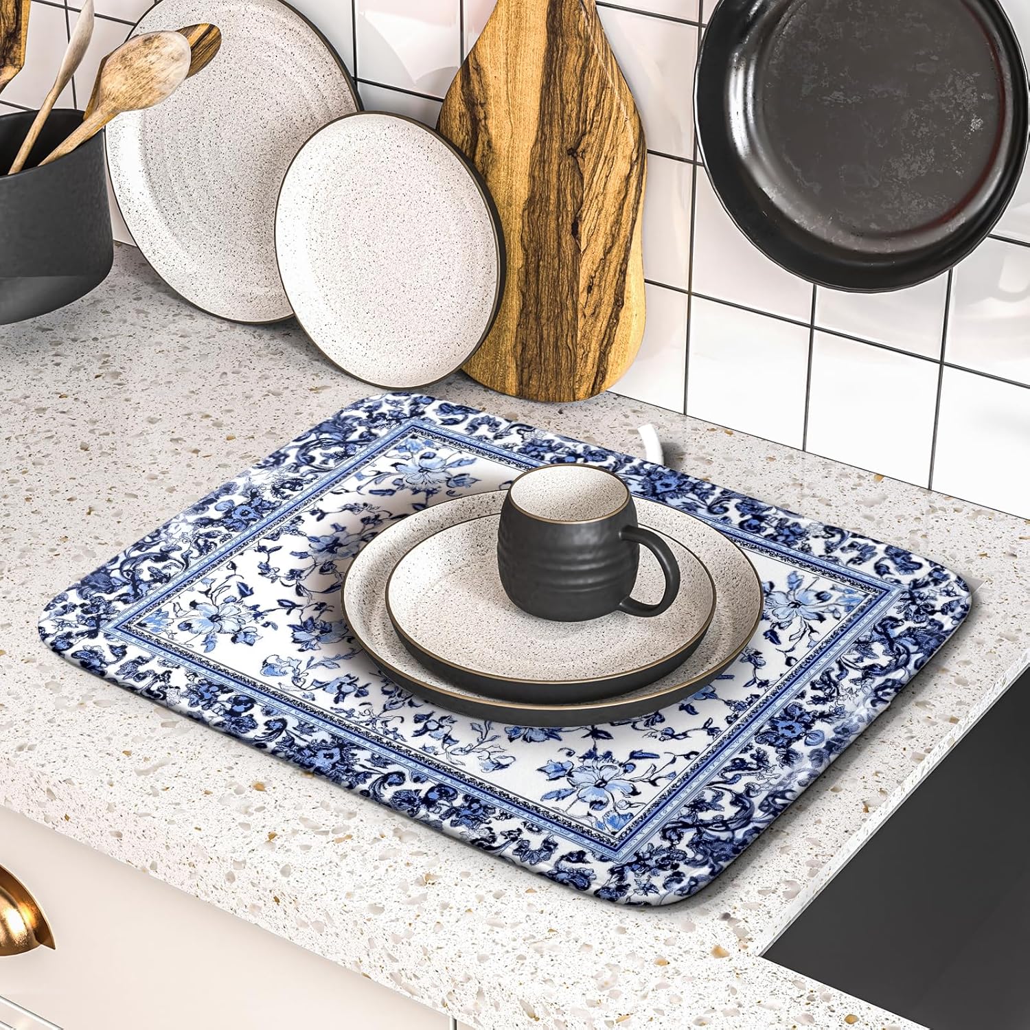 • 【Protect Tableware】Place your dishes on it or under dish racks, the bohemian flower dish mat prevents bowls, glassware, and more tablewares from being scratched or worn, can be used as dish drying mat, sink mat, dishes drainer mats to keep the countertop dry and tidy.