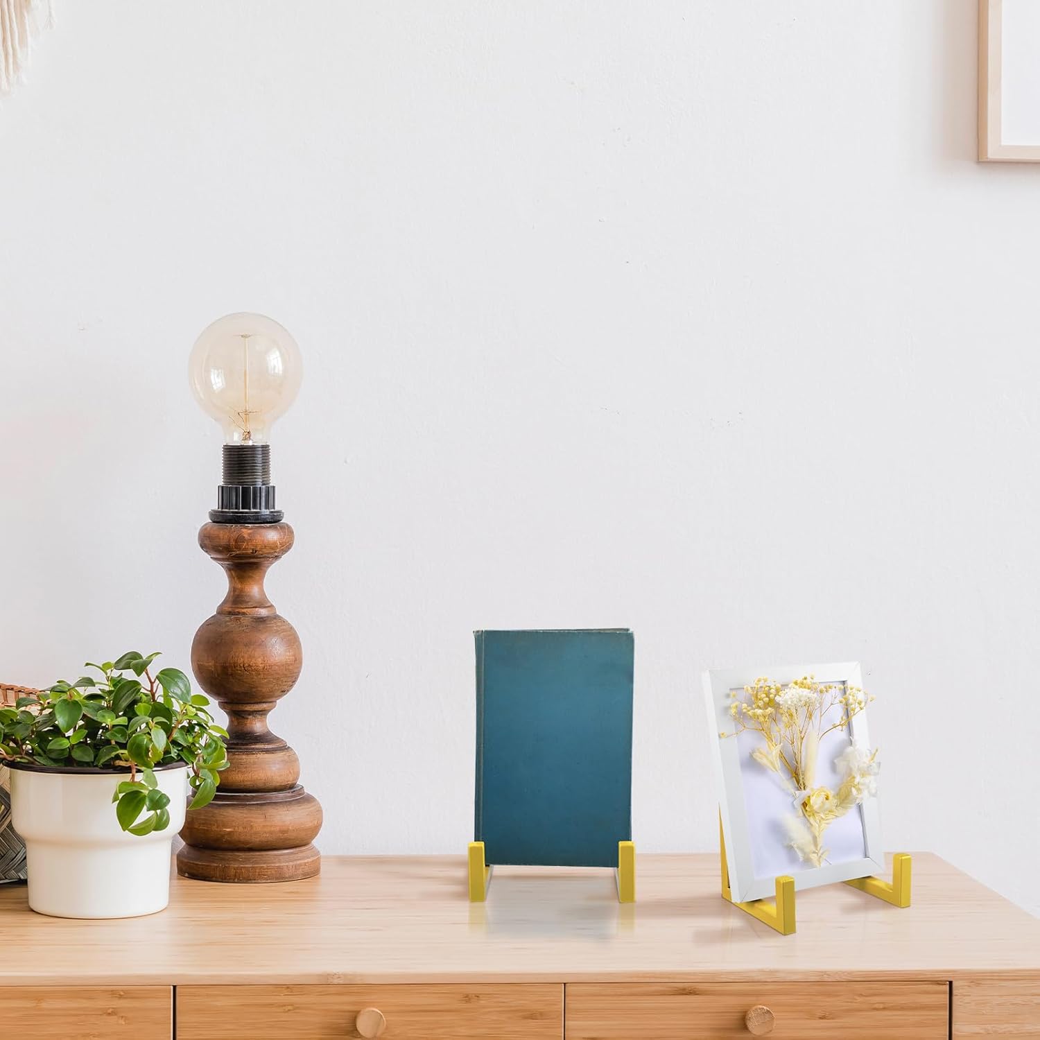• Industrial Style: as you can see in the pictures, our picture frame holder stand comes in gold color, presenting a modern and industrial visual effect; Meanwhile, they adopt geometric lines and shapes, smooth and simple, adding a sense of aesthetic beauty to your tabletops and shelves
