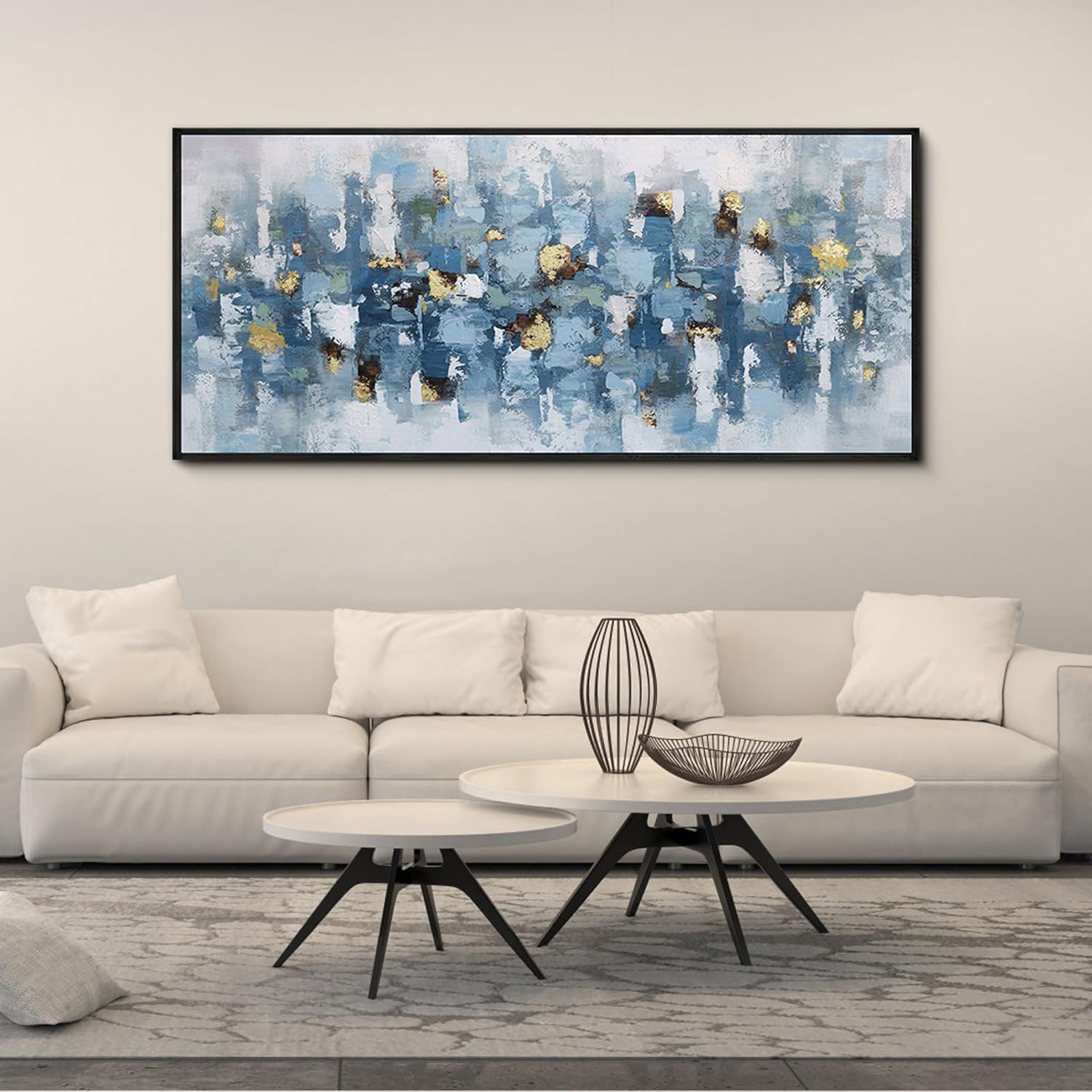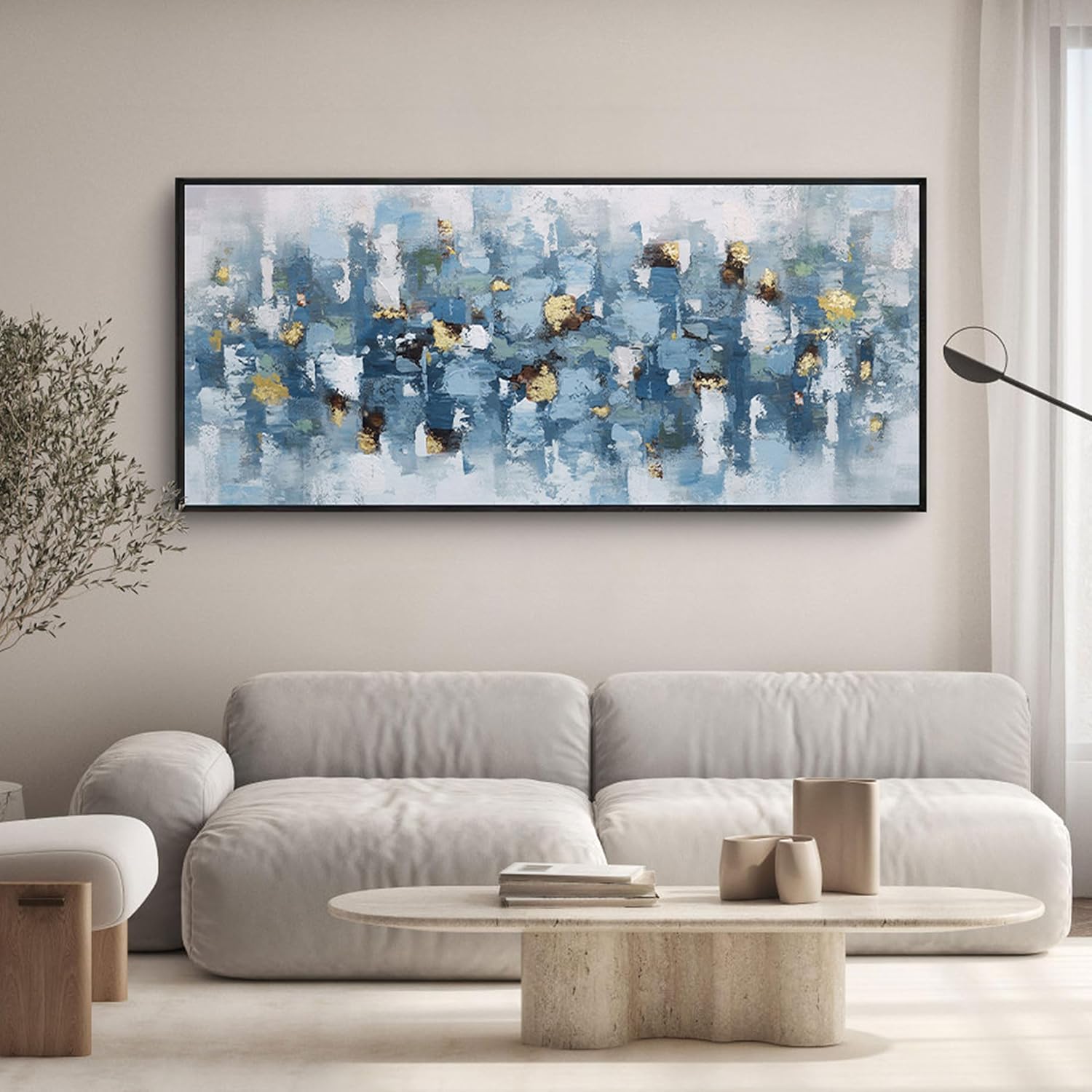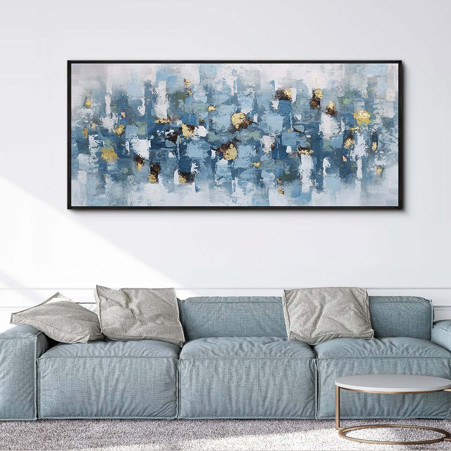 • Blue and White Abstract Wall Art Living Room Wall Decor Gold Picture Artwork for Walls Prints Paintings Framed Canvas Bedroom Office Guest Room Home Decoration 70x31 Inches