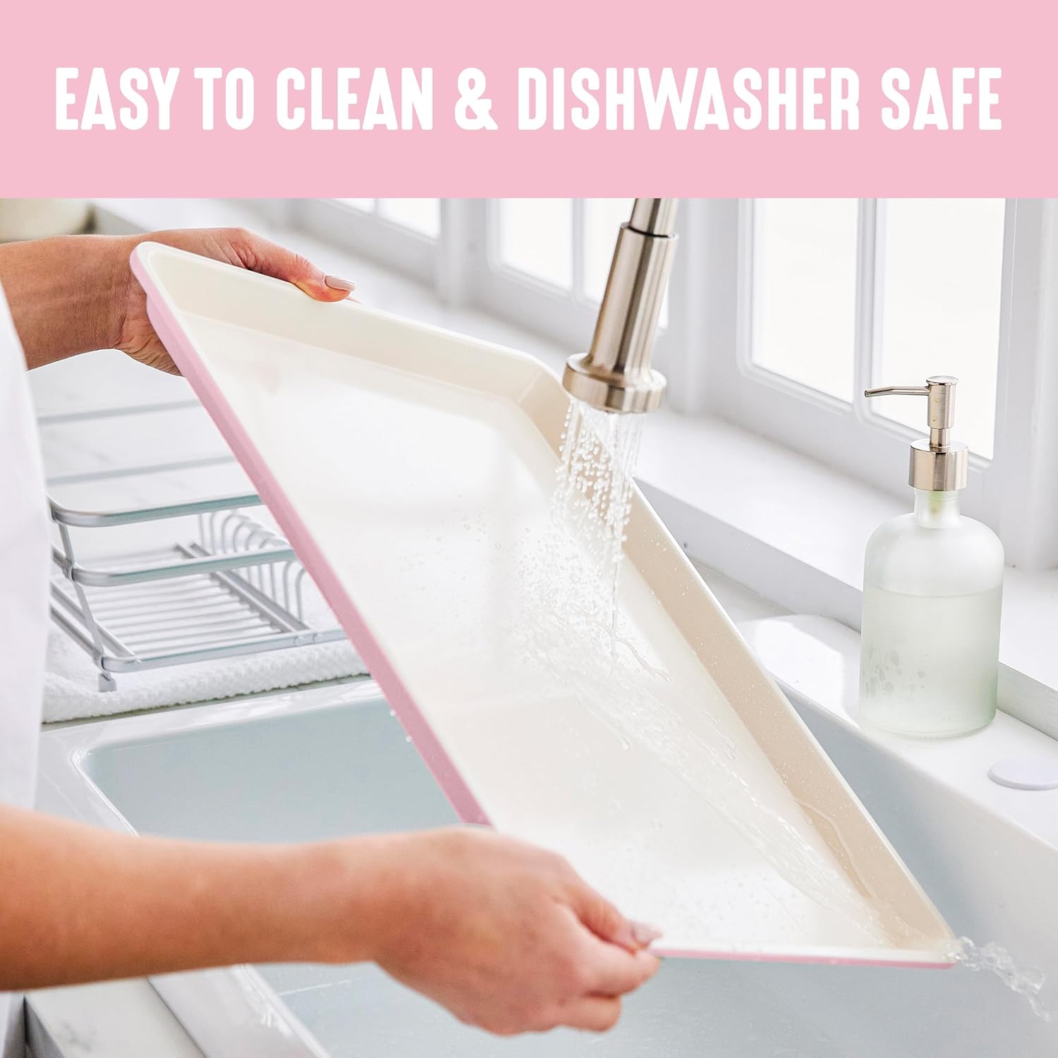 • HEALTHY, DURABLE, AND STYLISH: GreenLife Bakeware features a toxin-free ceramic nonstick that’s derived from sand and free of PFAS, delivering easy release, effortless cleanup. Built to last with heavy-duty construction, reinforced rims to prevent warping, and oven safe performance up to 450°F, these vibrant pans ensure even baking every time and add a pop of color in every kitchen.