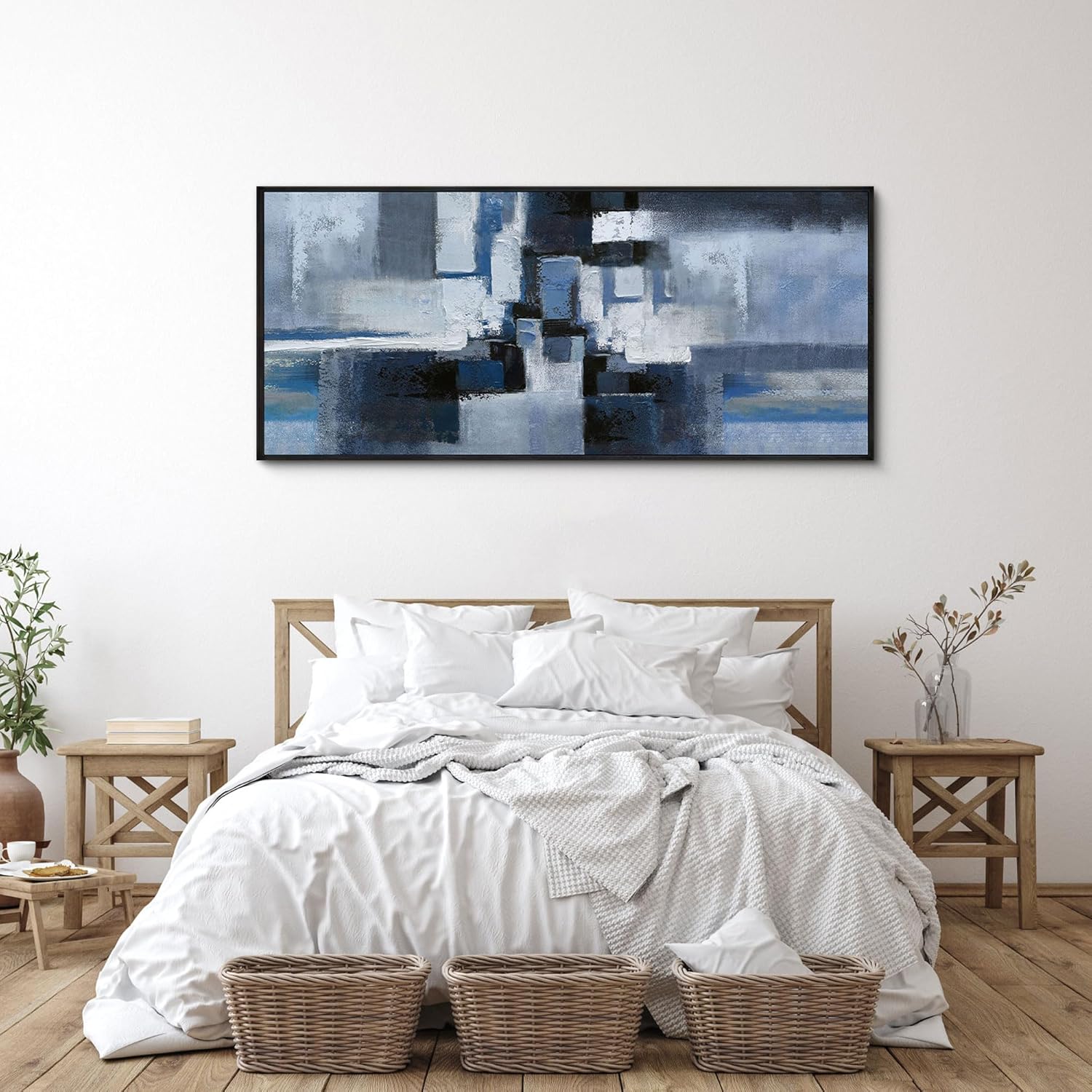 • Large Abstracr Wall Art Blue and Black Canvas Picture for Living Room Office Wall Decor Bedroom Art Framed Artwork Modern Wall Decoration 70x31 Inches