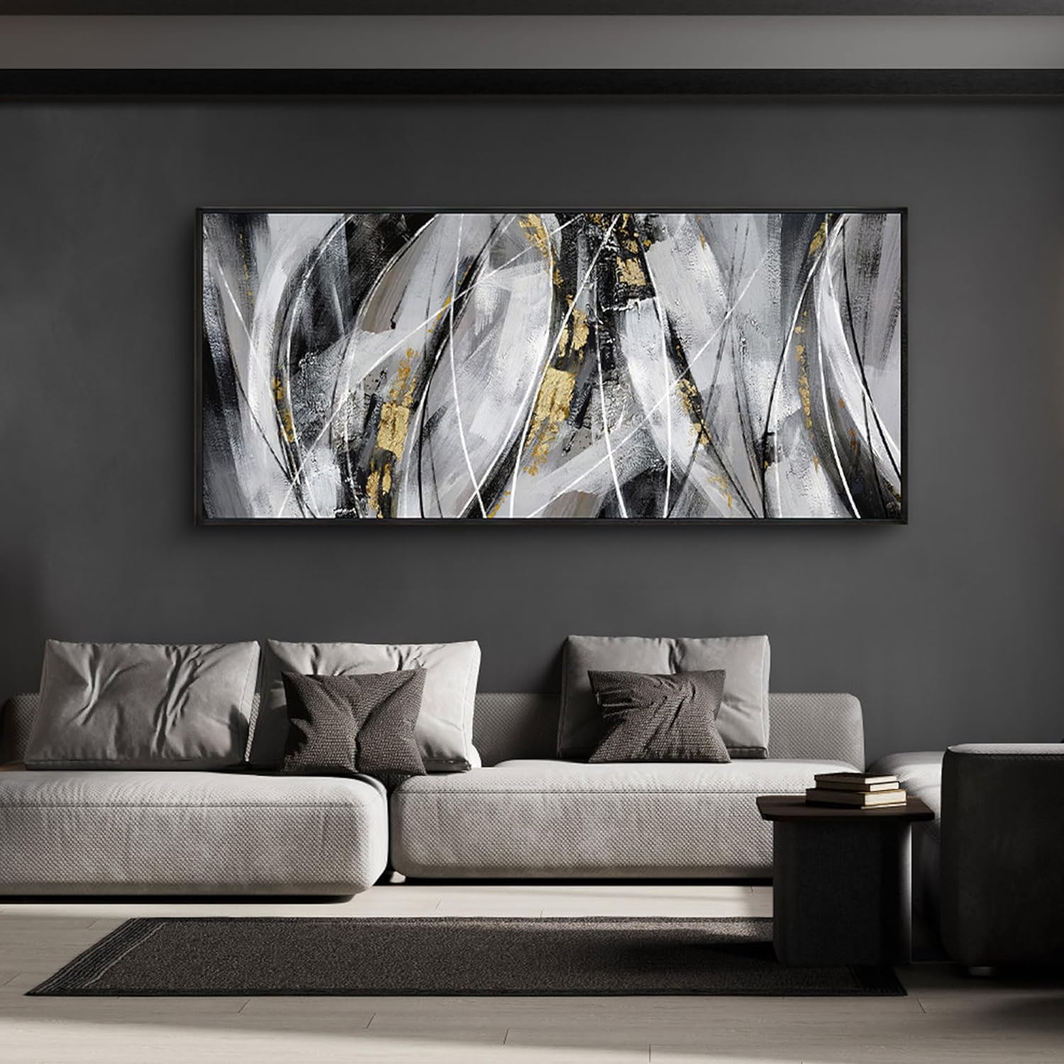 • Abstract Frame Wall Art Black and White Picture for Living Room Black and Gold Framed Artwork Canvas Art Work for Office Home Decor Bedroom Wall Decoration 70x31 Inches