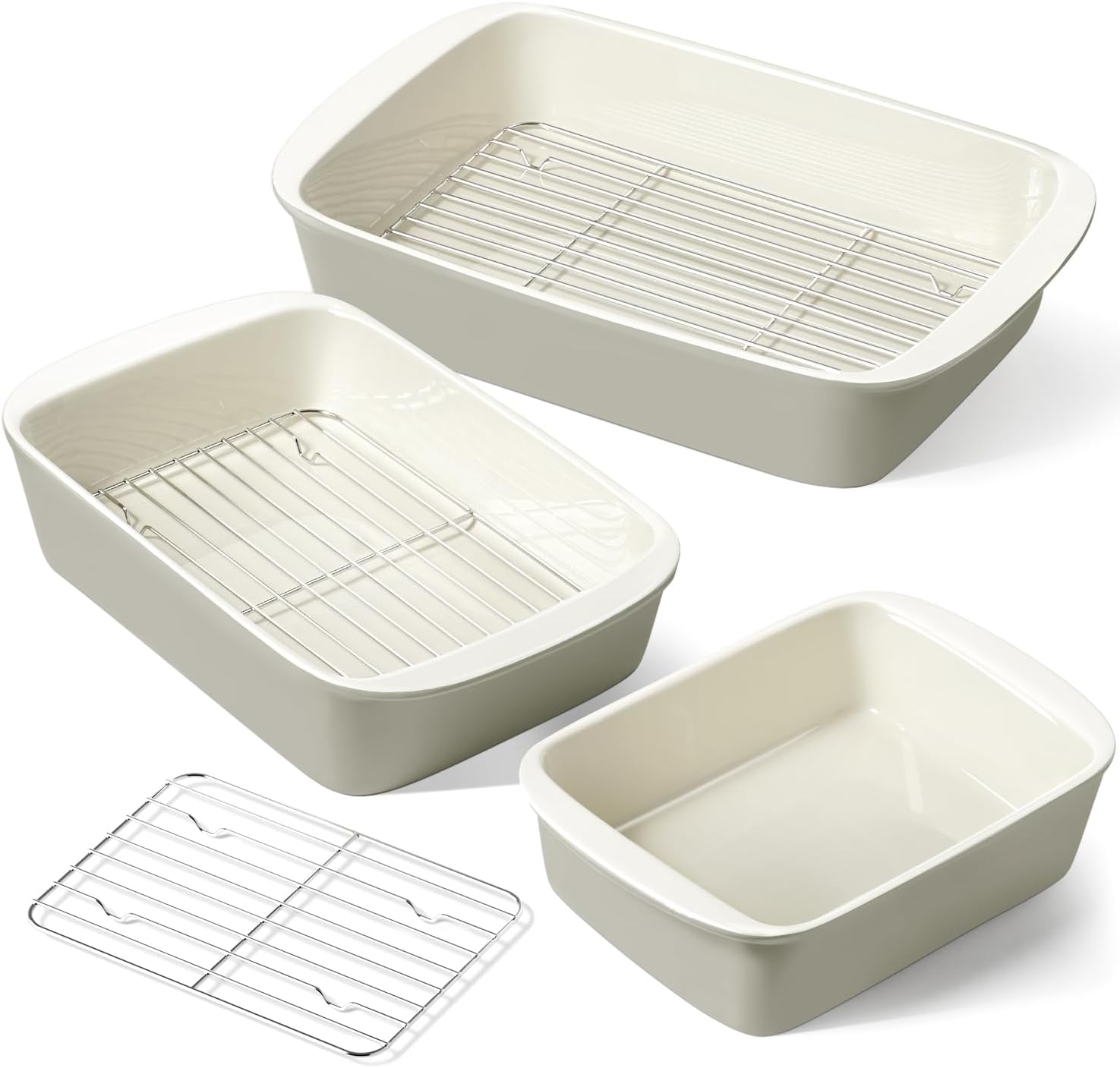 • Drip Racks for Healthier, Crispier Cooking: Each baking dish includes a matching oil-drip rack, perfect for roasting meats, bacon, and more. The racks help reduce excess grease, allowing you to cook delicious, healthier, and crispier meals