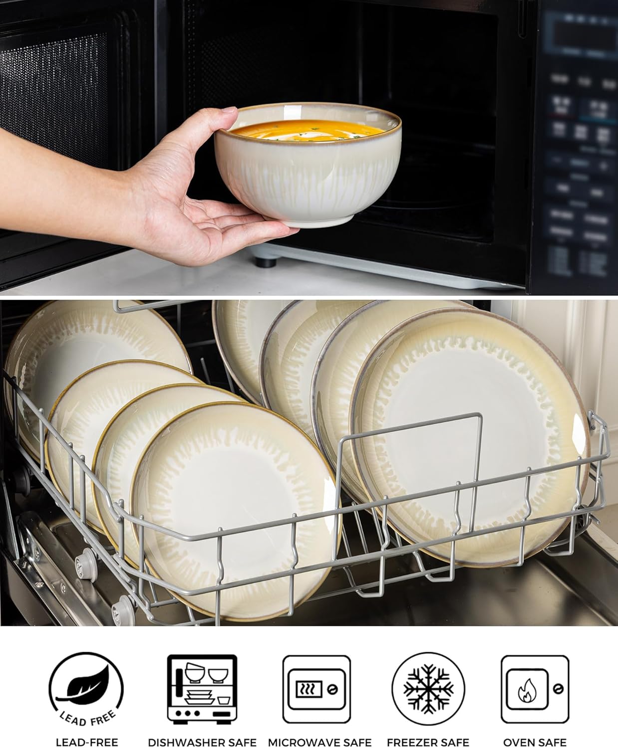 • 【LEAD FREE EAT SAFTY】Our plates and bowls set is made of druable material and features an all-natural glaze that is lead-free, cadmium-free. The set is fired at a high temperature of 2340℉ for 17 hours to ensure its durability and safety. With this dinnerware set, you'll never have to worry about any health problems.