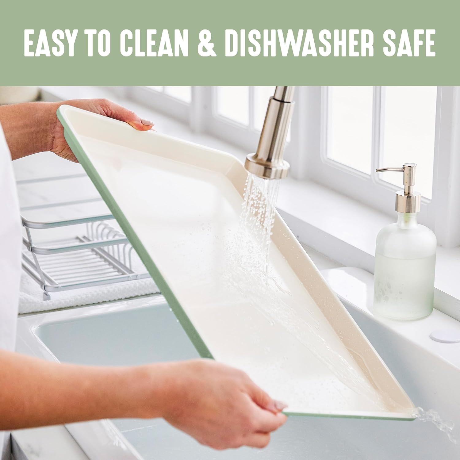 • HEALTHY, DURABLE, AND STYLISH: GreenLife Bakeware features a toxin-free ceramic nonstick that’s derived from sand and free of PFAS, delivering easy release, effortless cleanup. Built to last with heavy-duty construction, reinforced rims to prevent warping, and oven safe performance up to 450°F, these vibrant pans ensure even baking every time and add a pop of color in every kitchen.