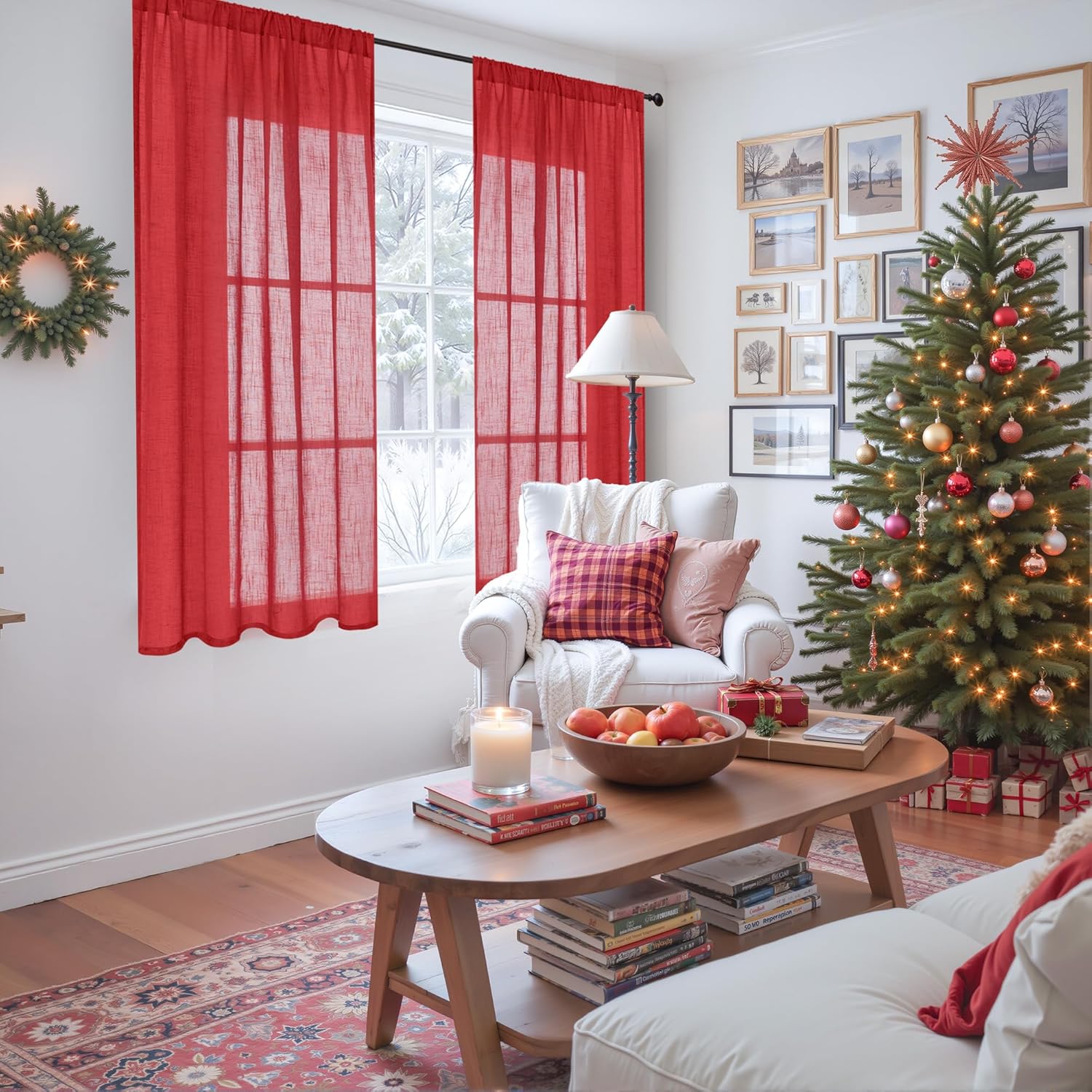 BGment Red Linen Curtains 54 Inch Length for Bedroom Window, Semi Sheer Drapes Lightweight Rustic Textured for Living Room Farmhouse with Rod Pocket Christmas Decor, 2 Panels Set, Each 42 Inch Wide