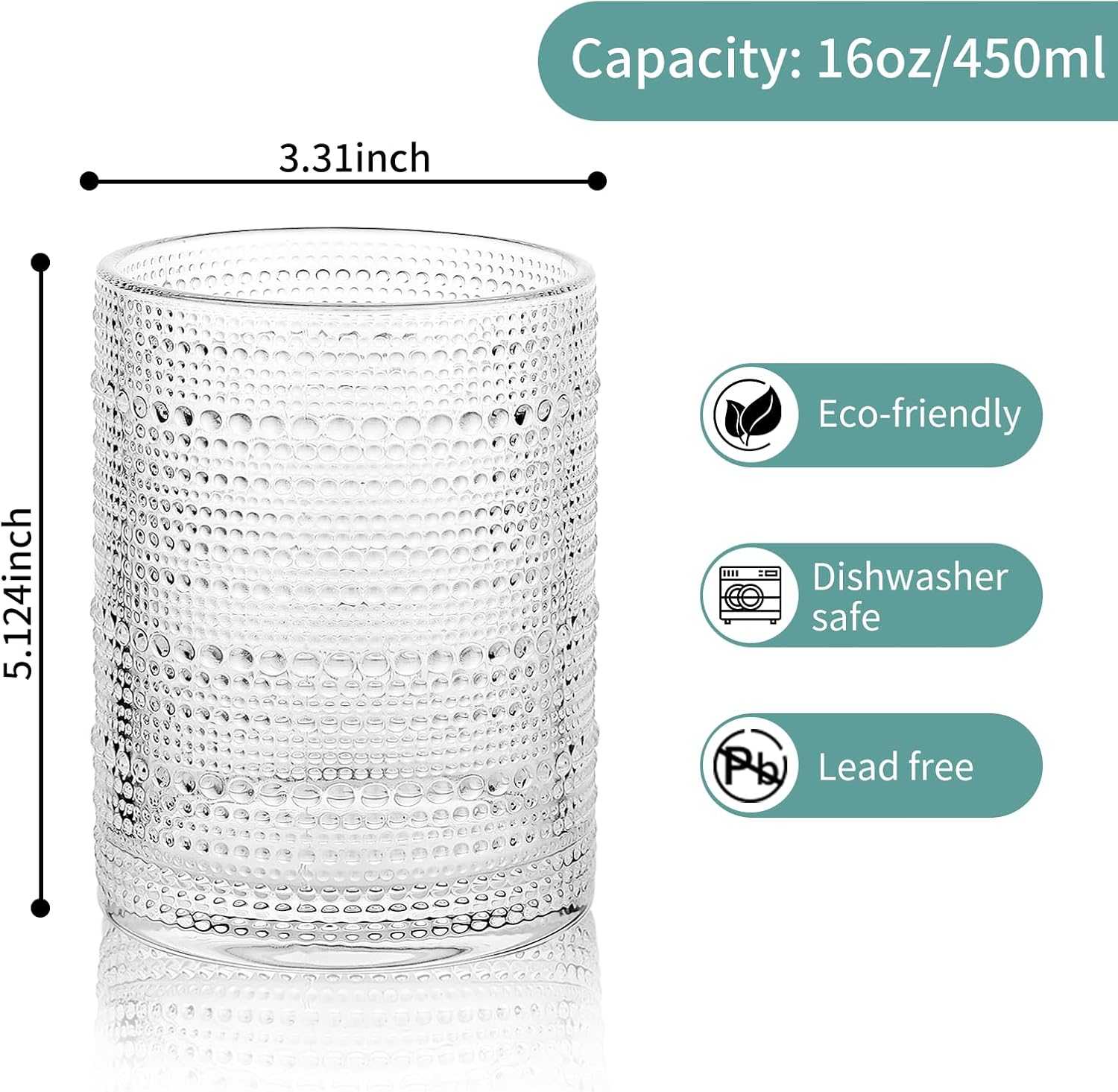 Hobnail Drinking Glasses Set,16 Oz Vintage Embossed Glass Tumbler for Cocktail, Beer, Juice, Water, Whiskey and Kitchen Glassware,2pack