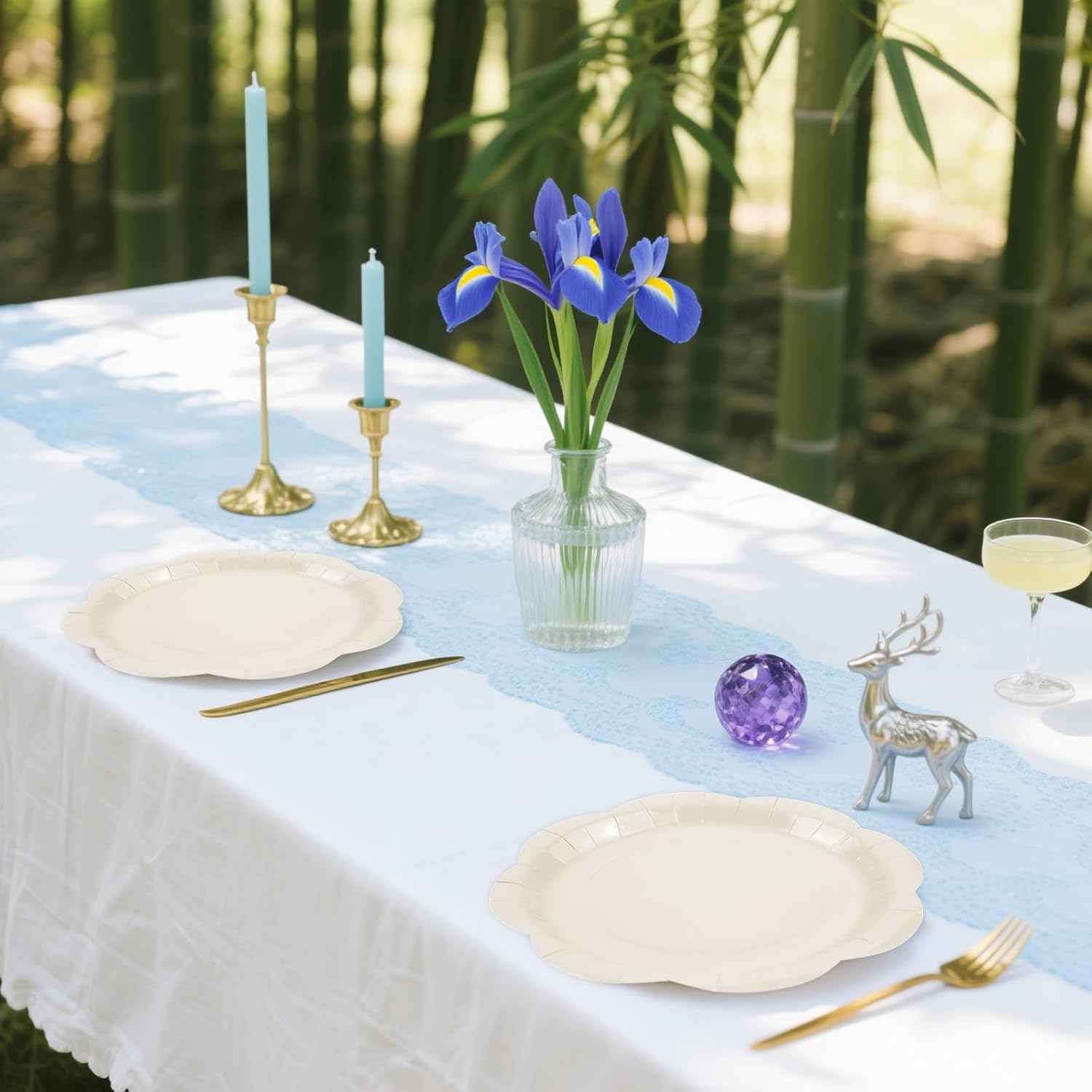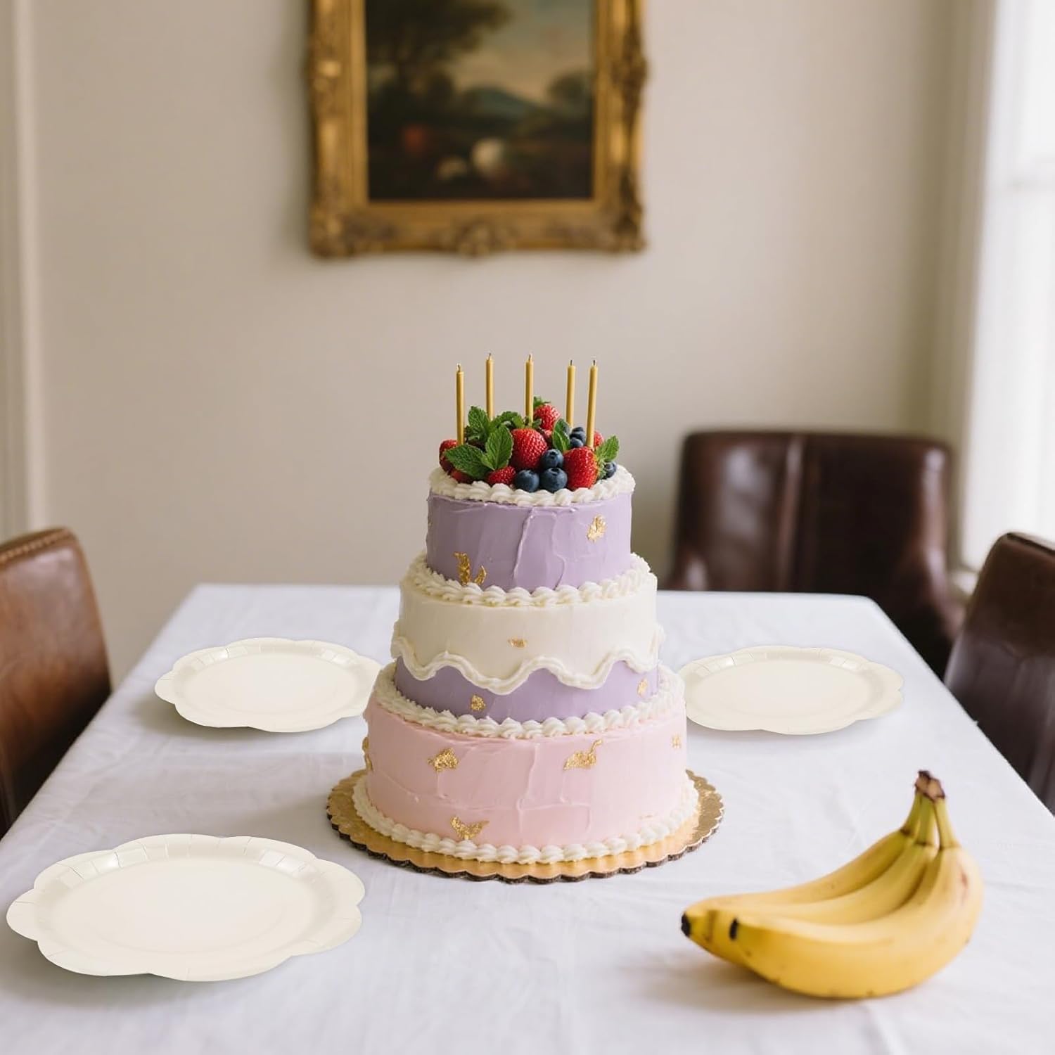 • Ivory Scalloped Paper Plates Set: This package includes 50 x 7-inch cream dessert plates, providing ample quantities for parties, gatherings, or daily use, ensuring everyone has their own stylish plate.