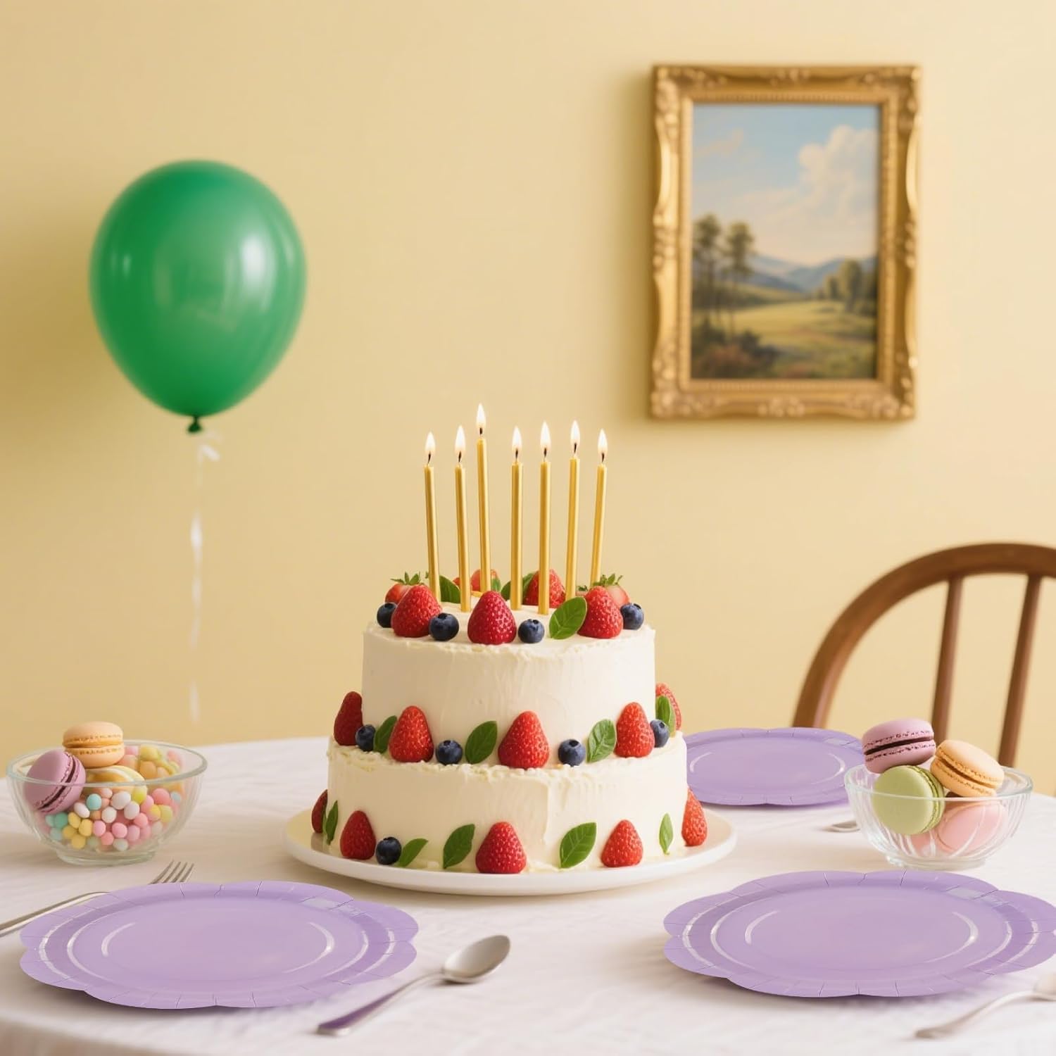 • Light Purple Scalloped Paper Plates Set: This package includes 50 x 7-inch light purple dessert plates, providing ample quantities for parties, gatherings, or daily use, ensuring everyone has their own stylish plate.