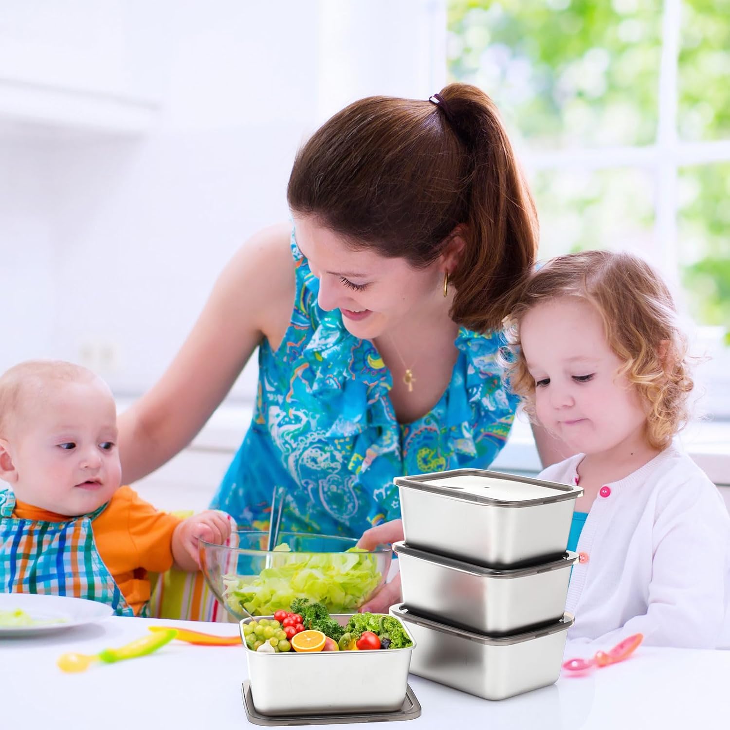 • Reliable & Lightweight Materials: made of food-grade stainless steel that is corrosion- and rust-resistant for safe everyday use. The lightweight design makes these stainless steel containers with lids easy to stack and store, while still safe for direct food contact. The lids are light but easy to open and close, stacking neatly in the fridge or freezer—ideal for meal prep and organized food storage. Dishwasher safe for quick and effortless cleaning