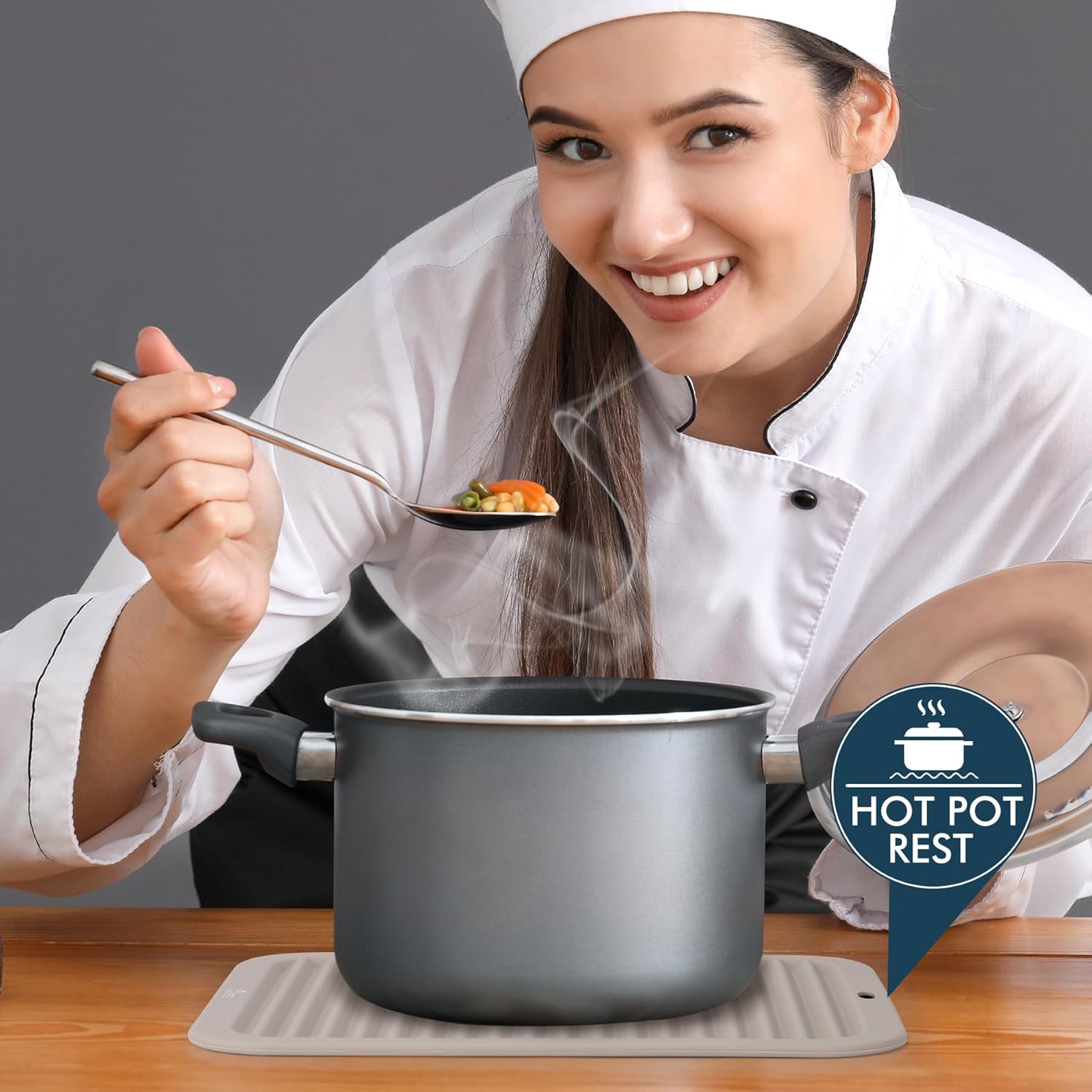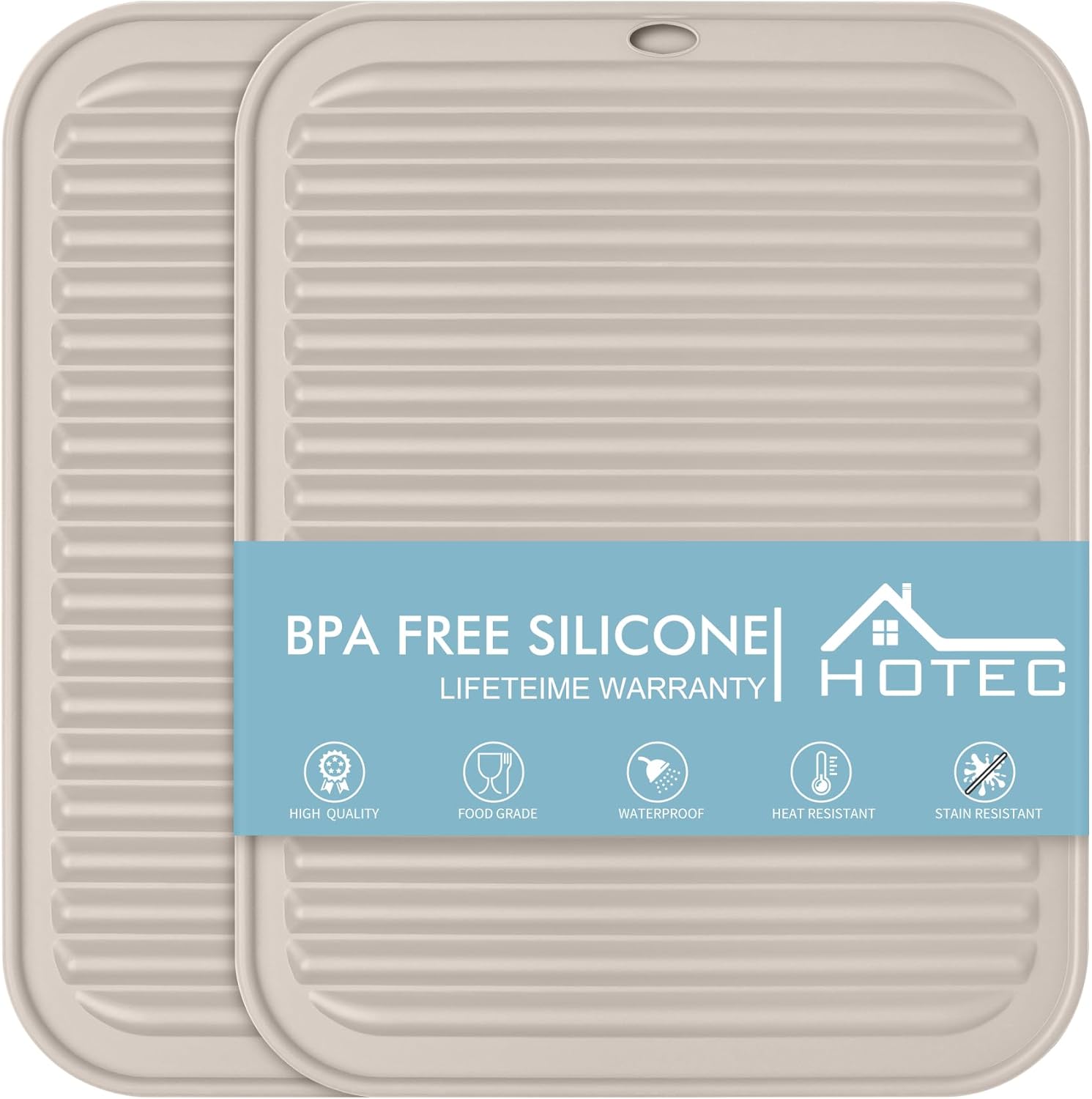 HOTEC 446℉ Heat Resistant Silicone Trivets, Hot Pot Holder Rest, Multi-Purpose Hot Pads for Kitchen Counter &Table, Set of 2, Khaki