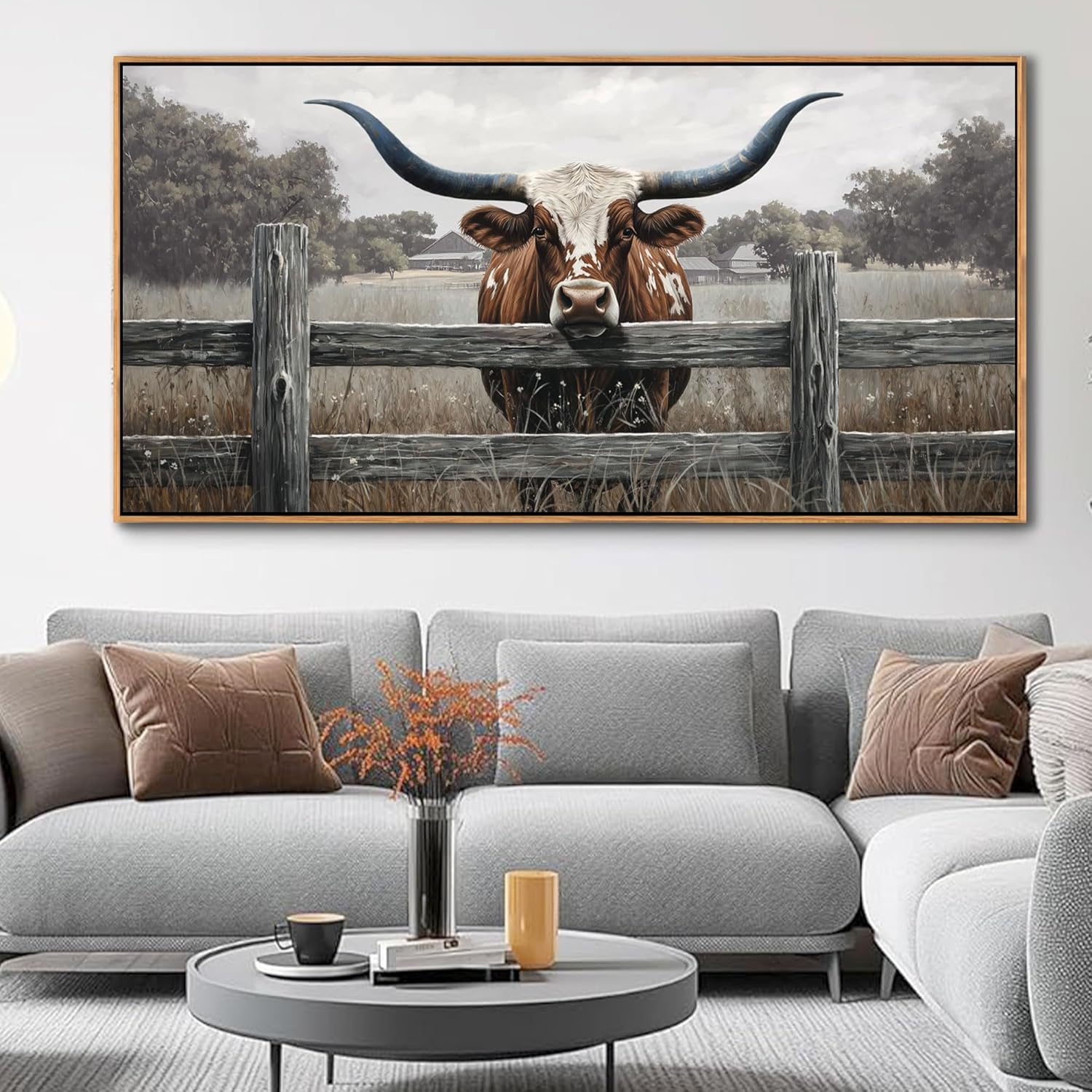 • Highland Cow Wall Art Size: 29×58 Inch Size Command attention with this bold farmhouse statement piece – large enough to transform blank walls into charming focal points in living rooms, bedrooms, or entryways.