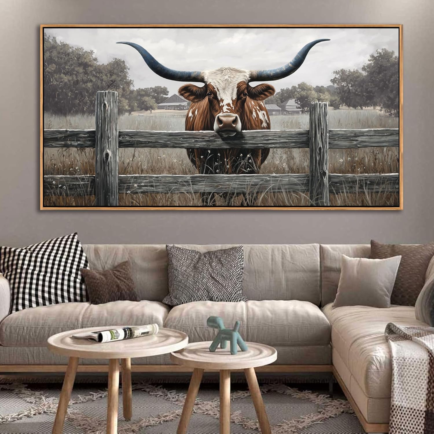 • Highland Cow Wall Art Size: 20×40 Inch Size Command attention with this bold farmhouse statement piece – large enough to transform blank walls into charming focal points in living rooms, bedrooms, or entryways.