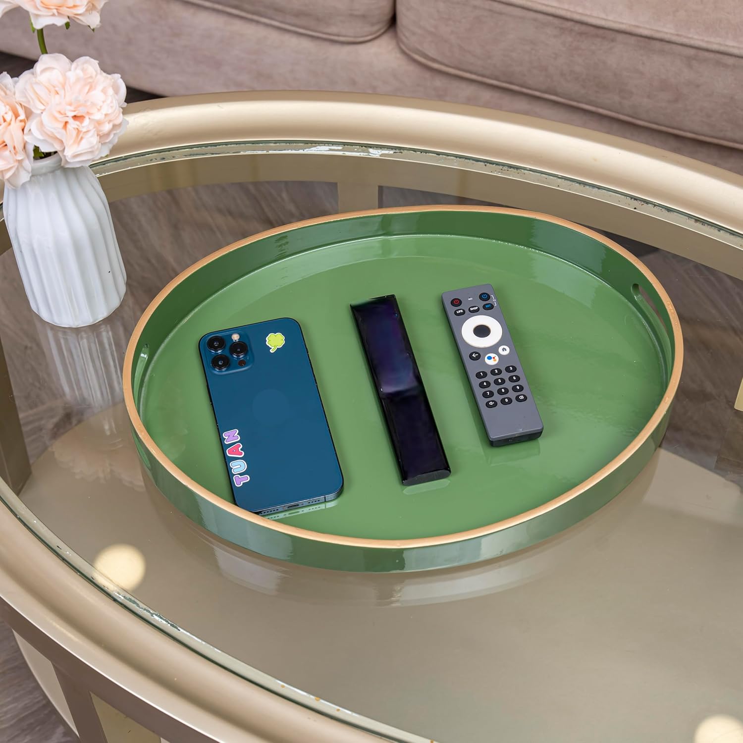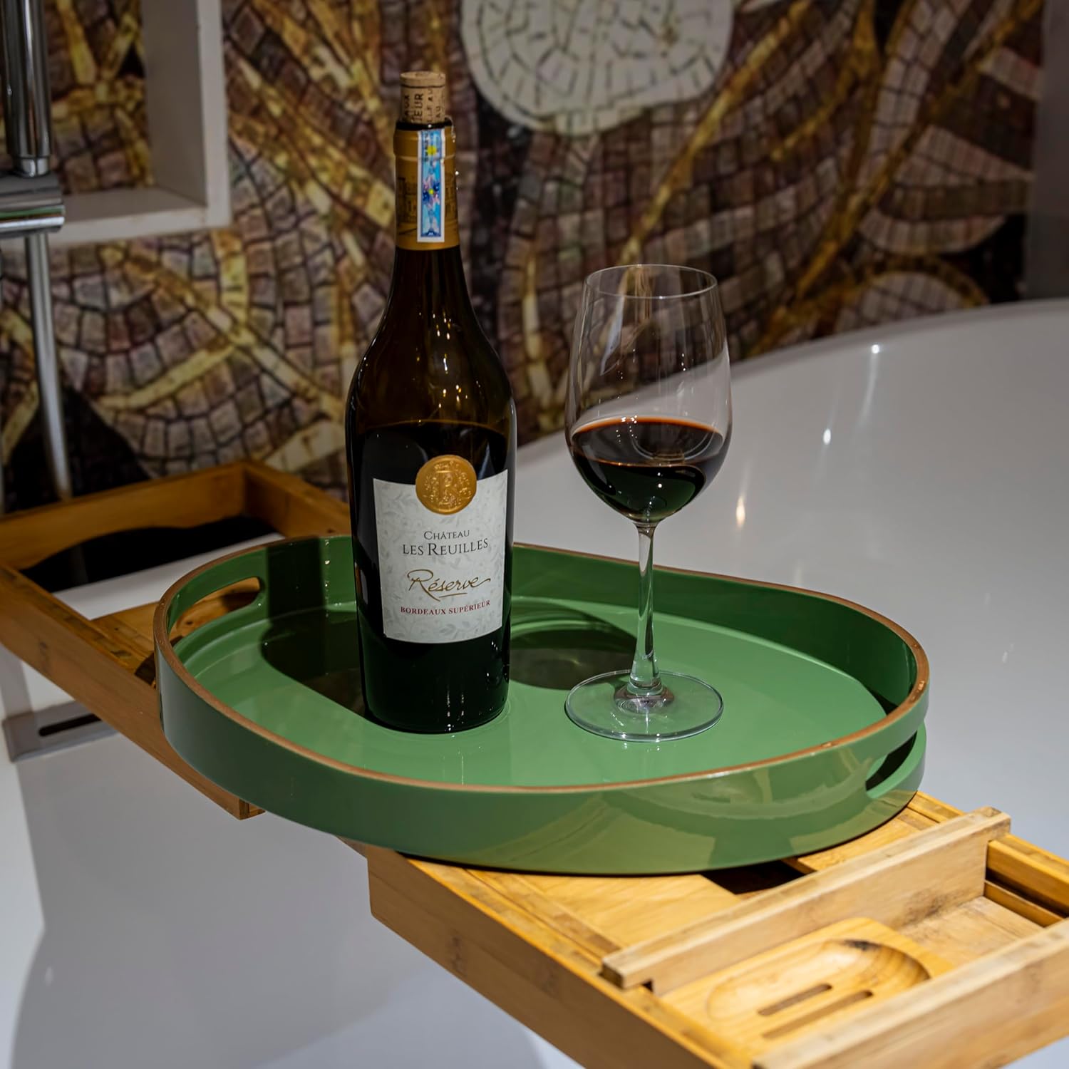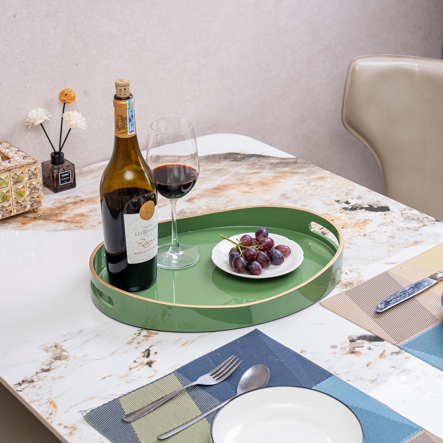 PEMAR 15.7" x 11.8" Oval Lacquer Serving Tray, Handmade Polished Coffee Table Tray w Insert Handles, Luxury Decorative Platters for Dining, Party, Dinner, Breakfast in Bed (Green)