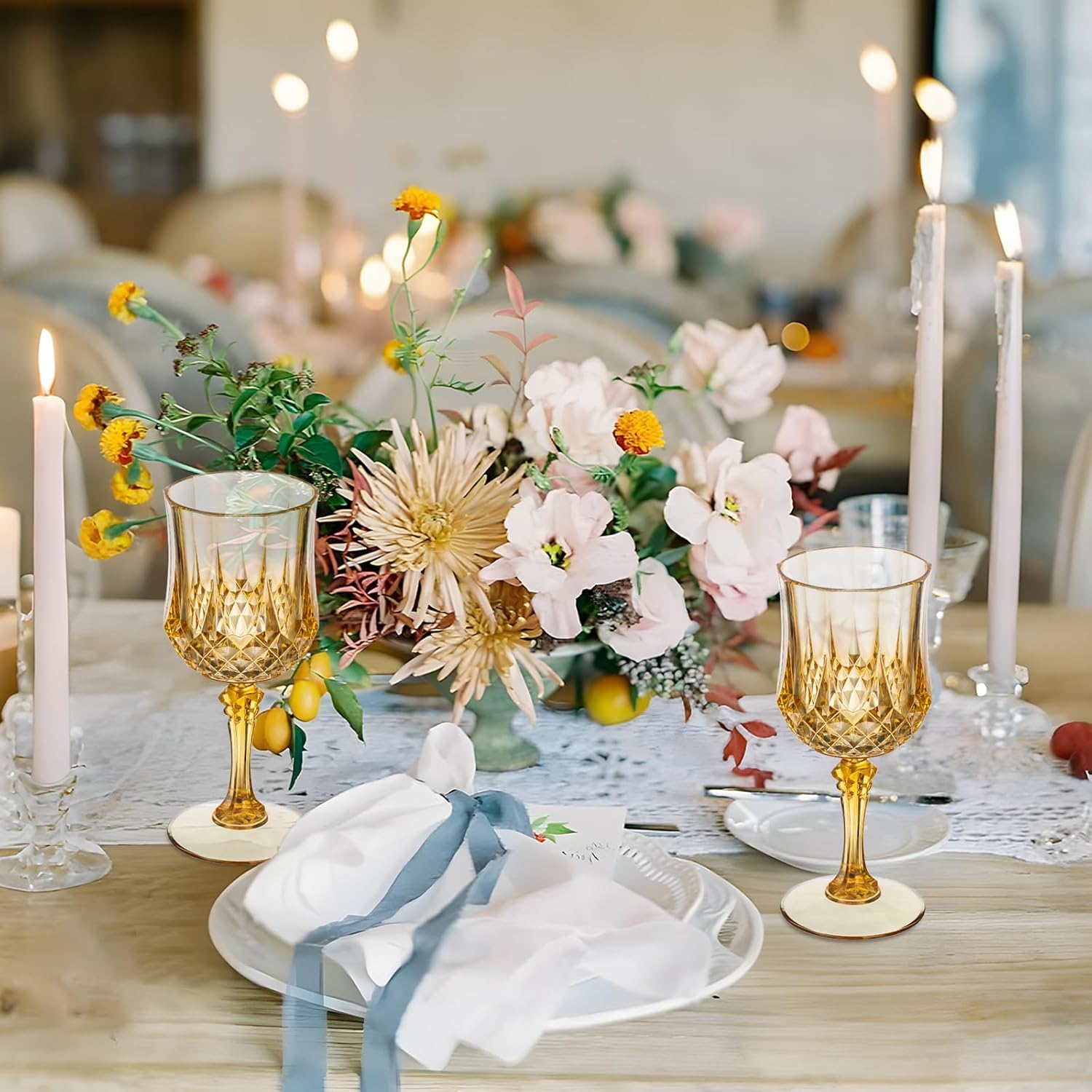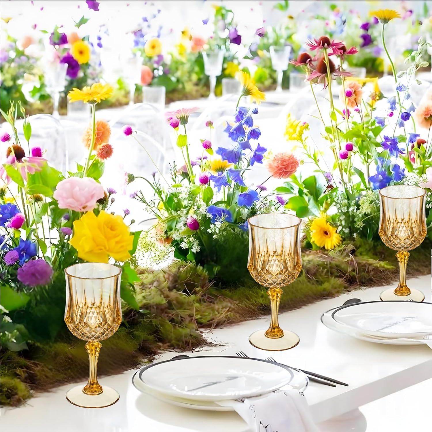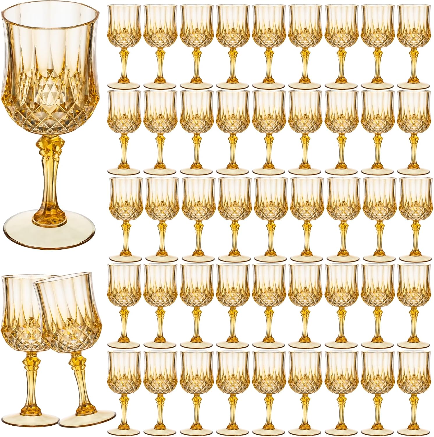 7OZ Plastic Wine Glasses, 48Pcs Amber Reusable Drinking Cups Vintage Champagne Flutes, Plastic Crystal Water Goblets for Parties Stemmed Shatterproof Drinking Glasses for Wedding, Toasting Party