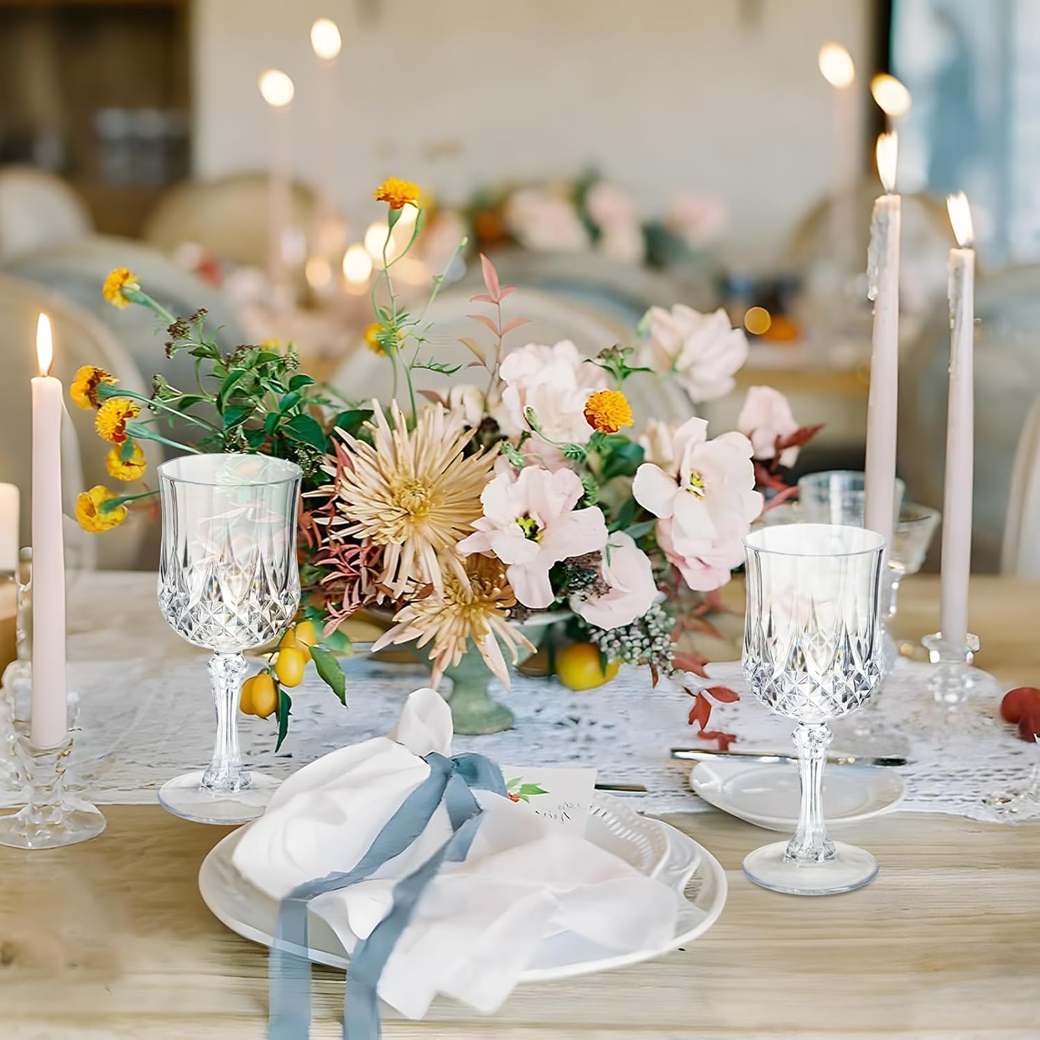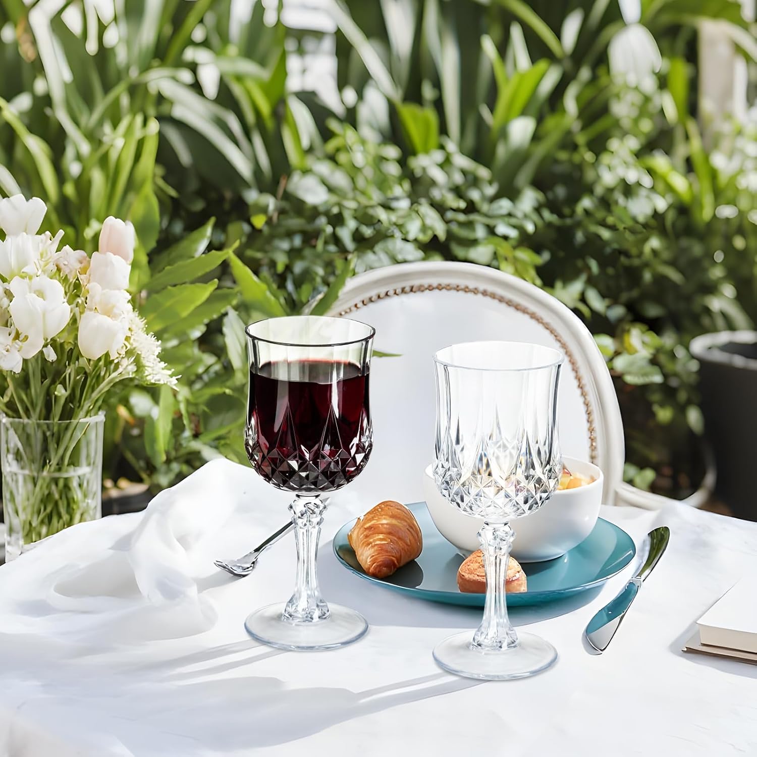 7OZ Plastic Wine Glasses, 10Pcs Clear Reusable Drinking Cups Vintage Champagne Flutes, Plastic Crystal Water Goblets for Parties Stemmed Shatterproof Drinking Glasses for Wedding, Toasting Party