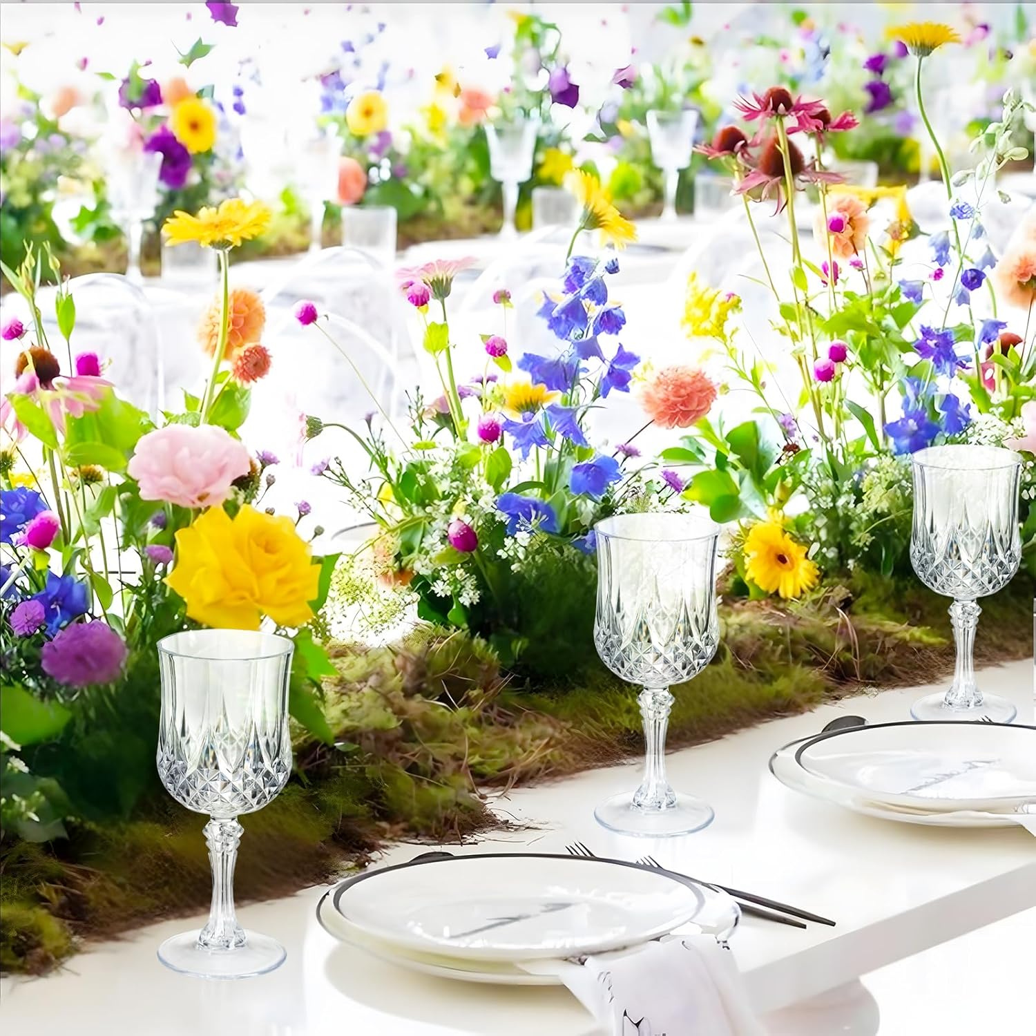 • 【Elegant Plastic Champagne Glass Set】This champagne glass set consists of 10/24/48/100 colored goblets, Each highball glass features a unique diamond-cut pattern,Add a modern and sophisticated feel to your table.The appearance of the plastic cup body has a crystal texture, in the light refraction can show its elegant sense of atmosphere,Whether you are tasting white/red wine or drinking everyday, this glass will meet your needs.